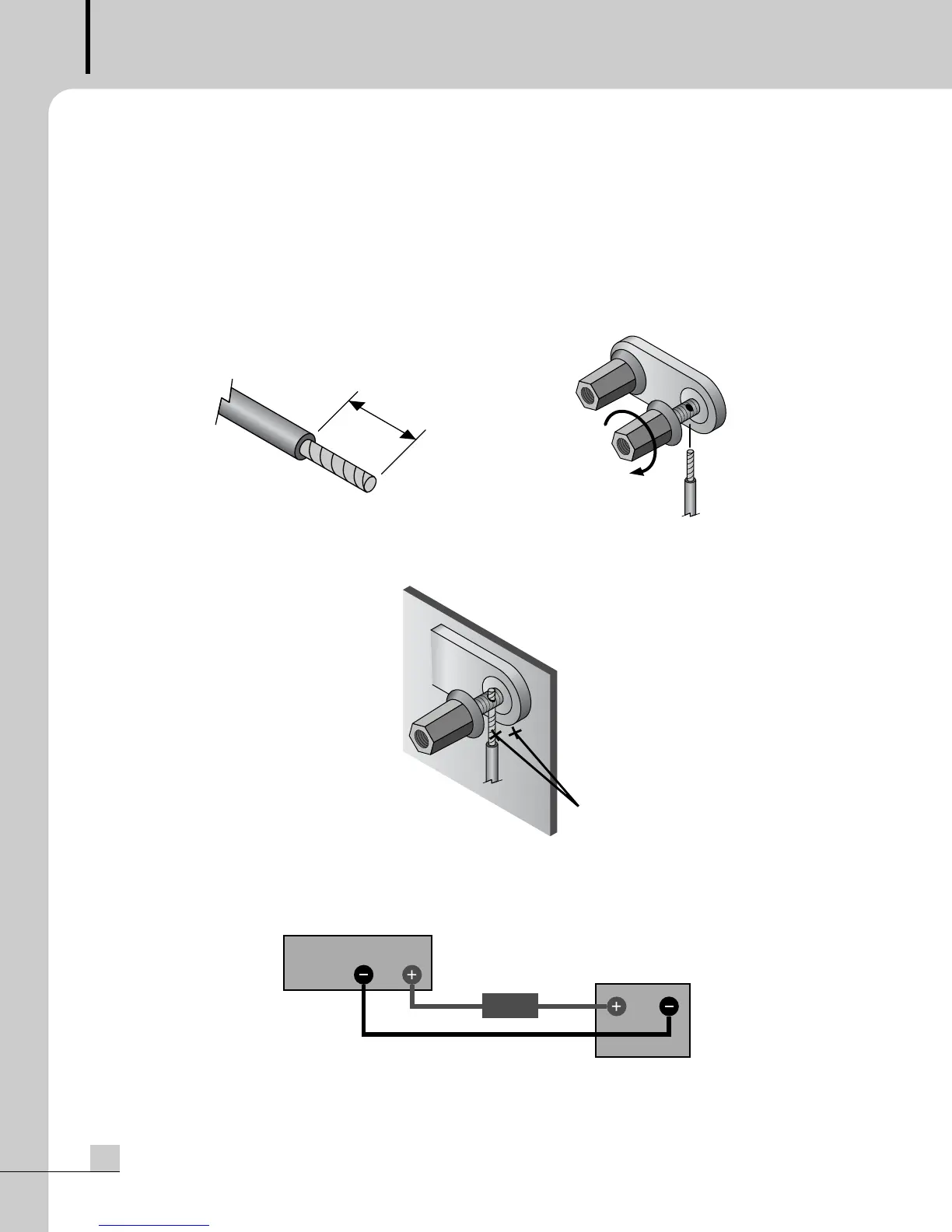 strands tightly and pass the bare ends through the holes in the terminals, tightening the terminals to secure the