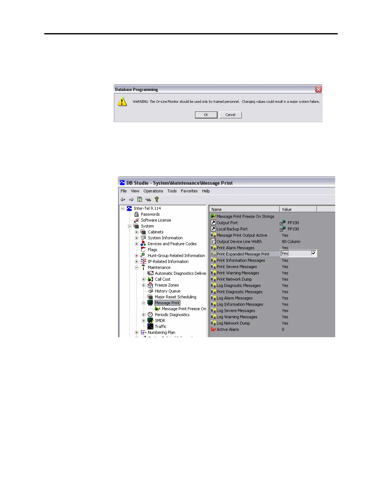 4. From the left pane, select System – Maintenance – Message Print – Print Expanded