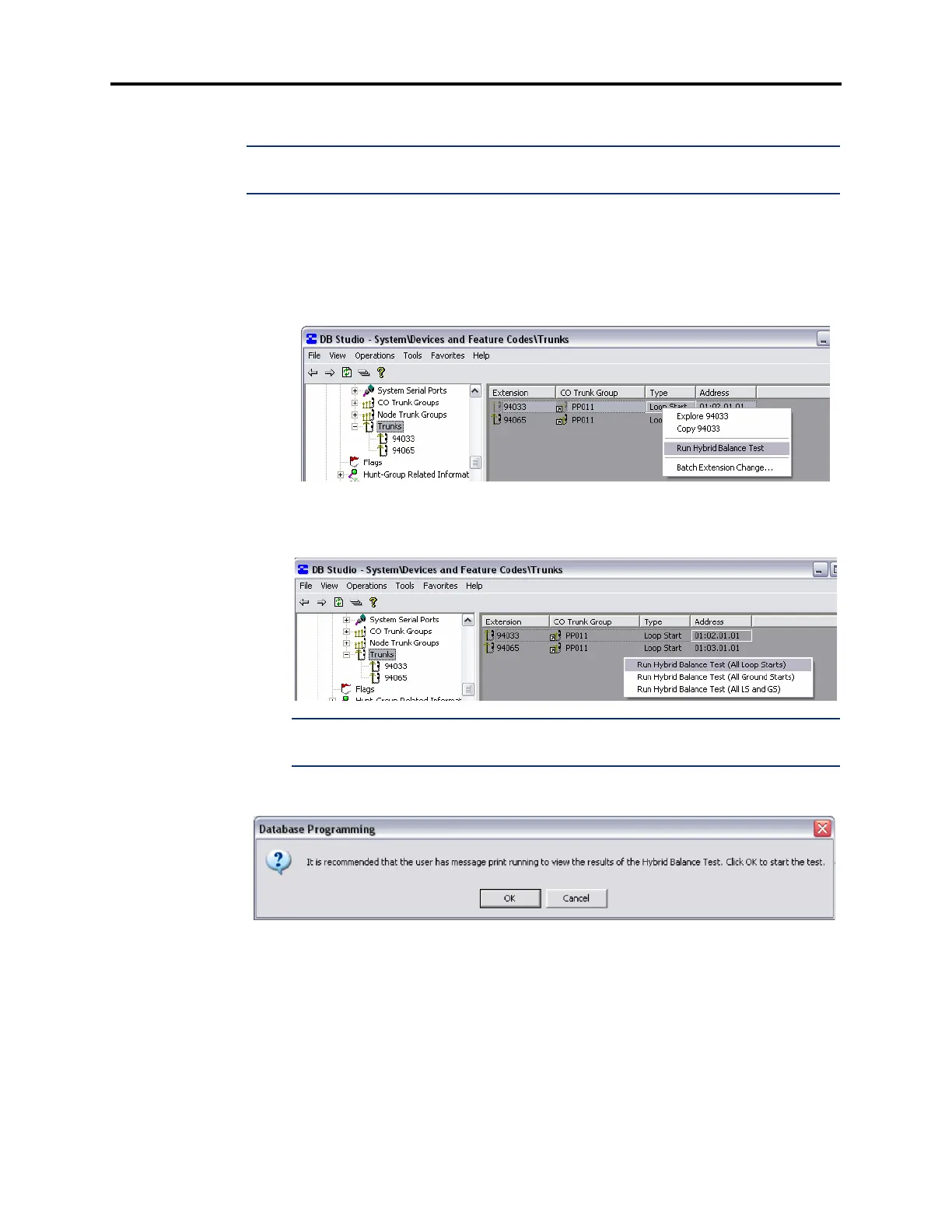 NOTE: While the Hybrid Balance Test runs, the selected trunk(s) are placed in a Busy