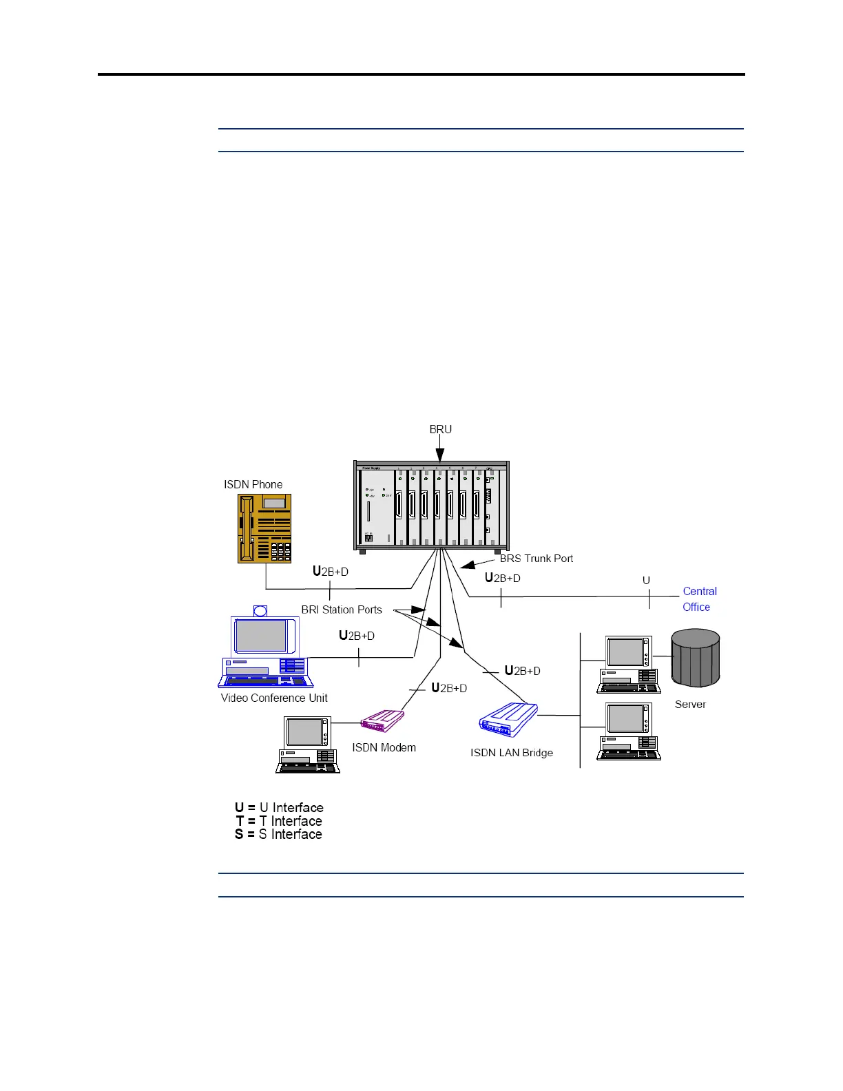 Bridge), a video device (e.g., video conference unit), or an ISDN phone via U interface. BRU
