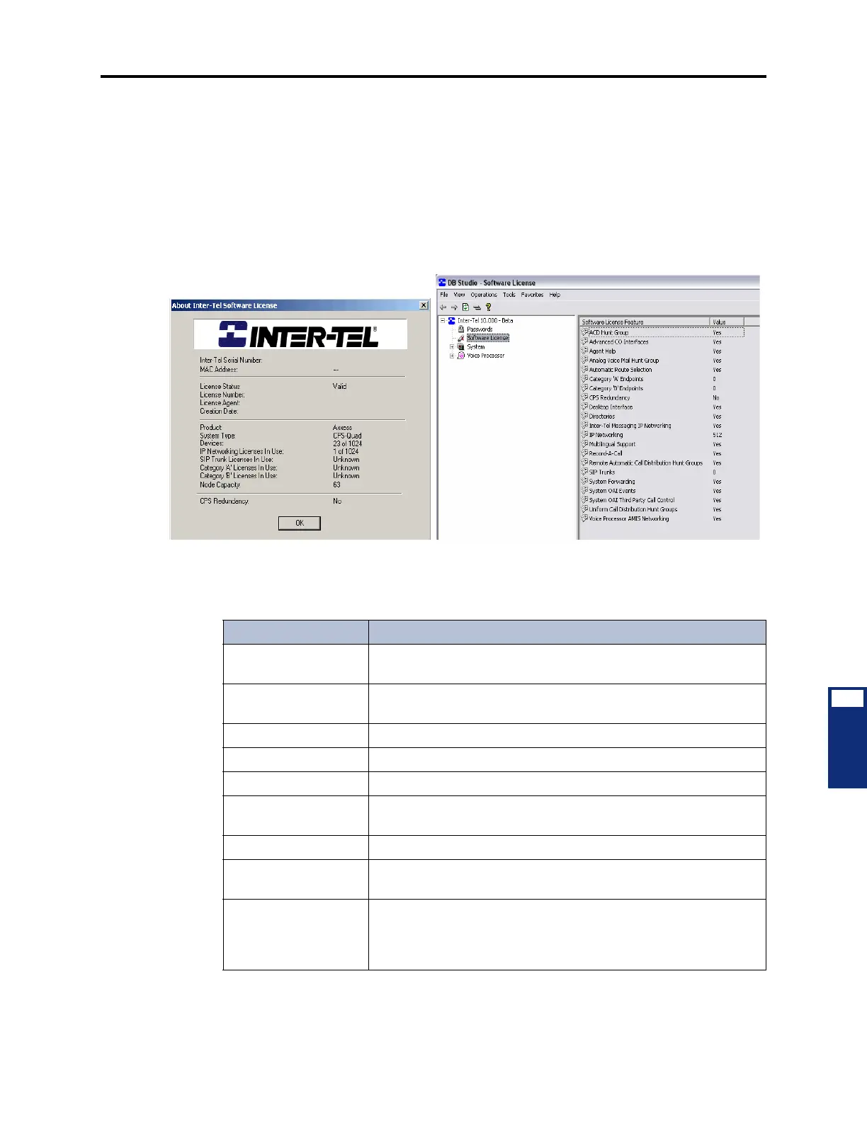 About Inter-Tel Software License menu option. The dialog box now contains main license and