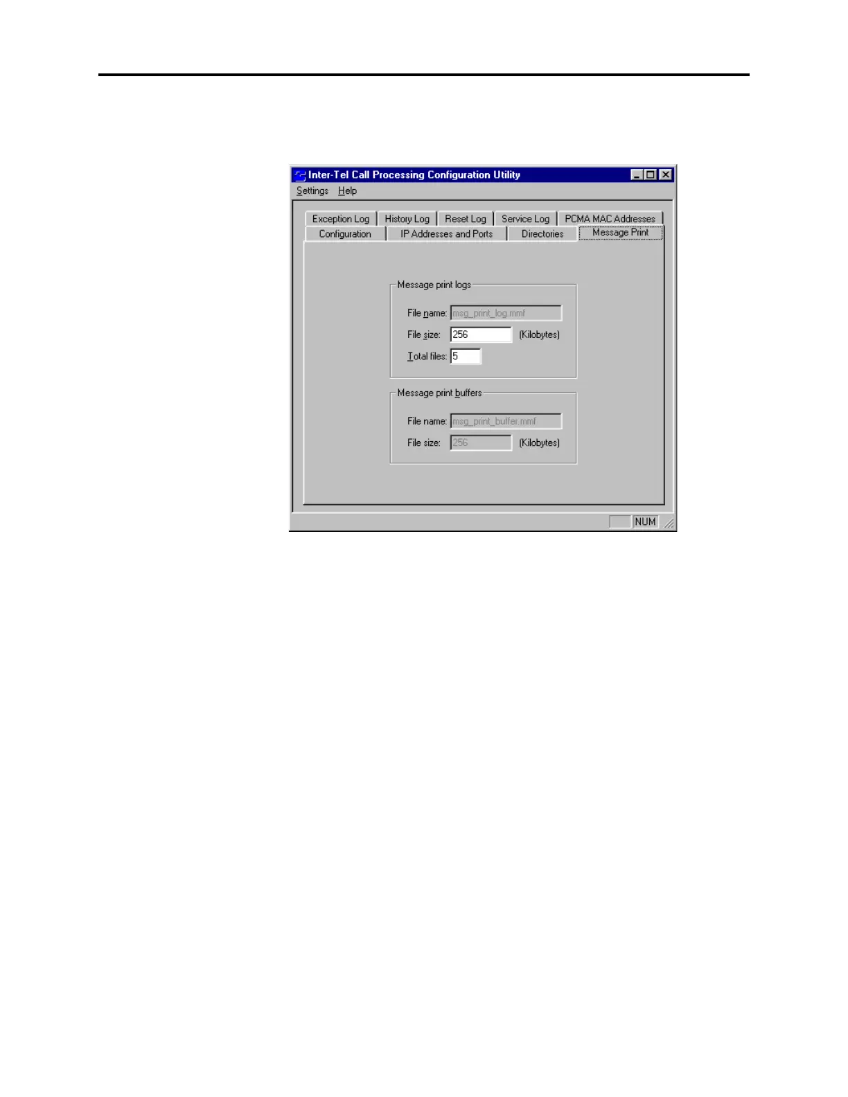 22.7 The Message Print tab contains fields that determine the file sizes and storage capacity
