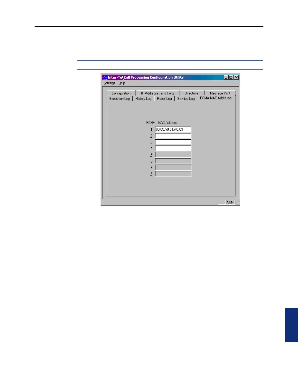 PCMA MAC Addresses Tab