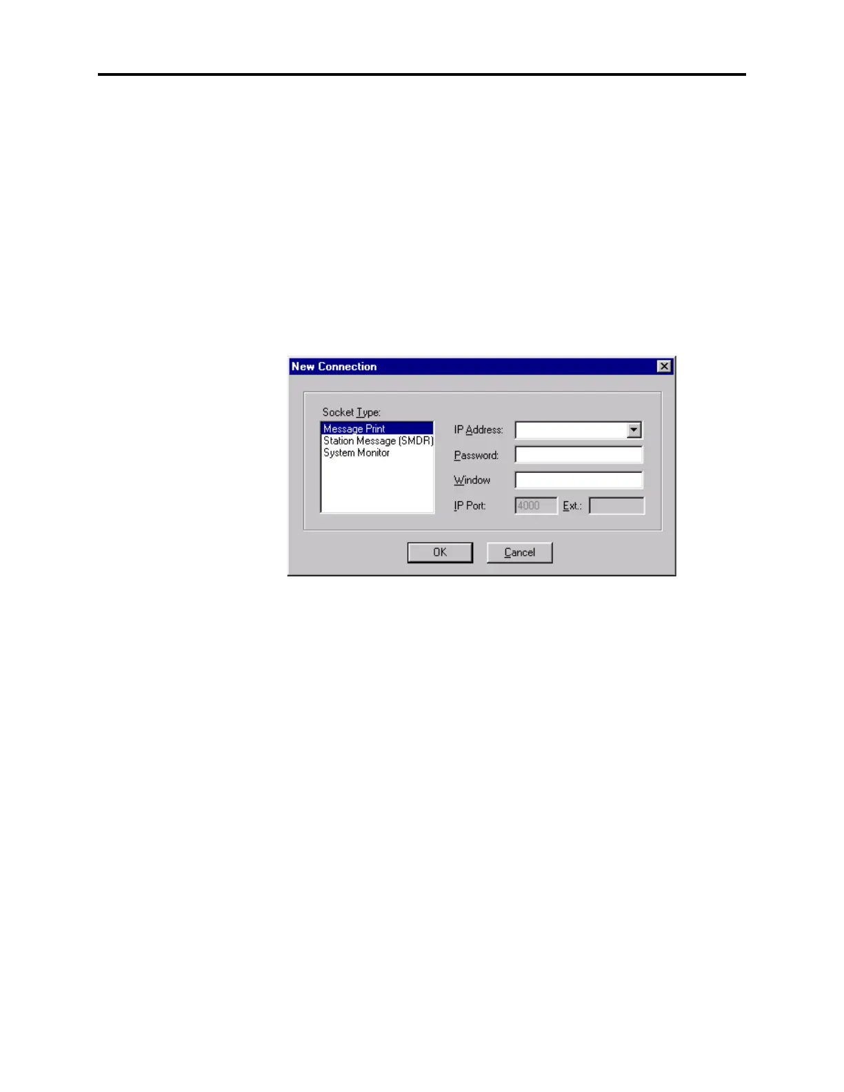 • Socket Type: Select the desired socket type. Your options are Message Print, SMDR,