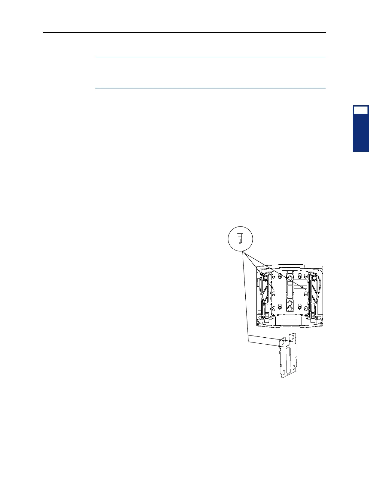 angular wall-mount knockout on the base of the phone. A portion of the adhesive label must be