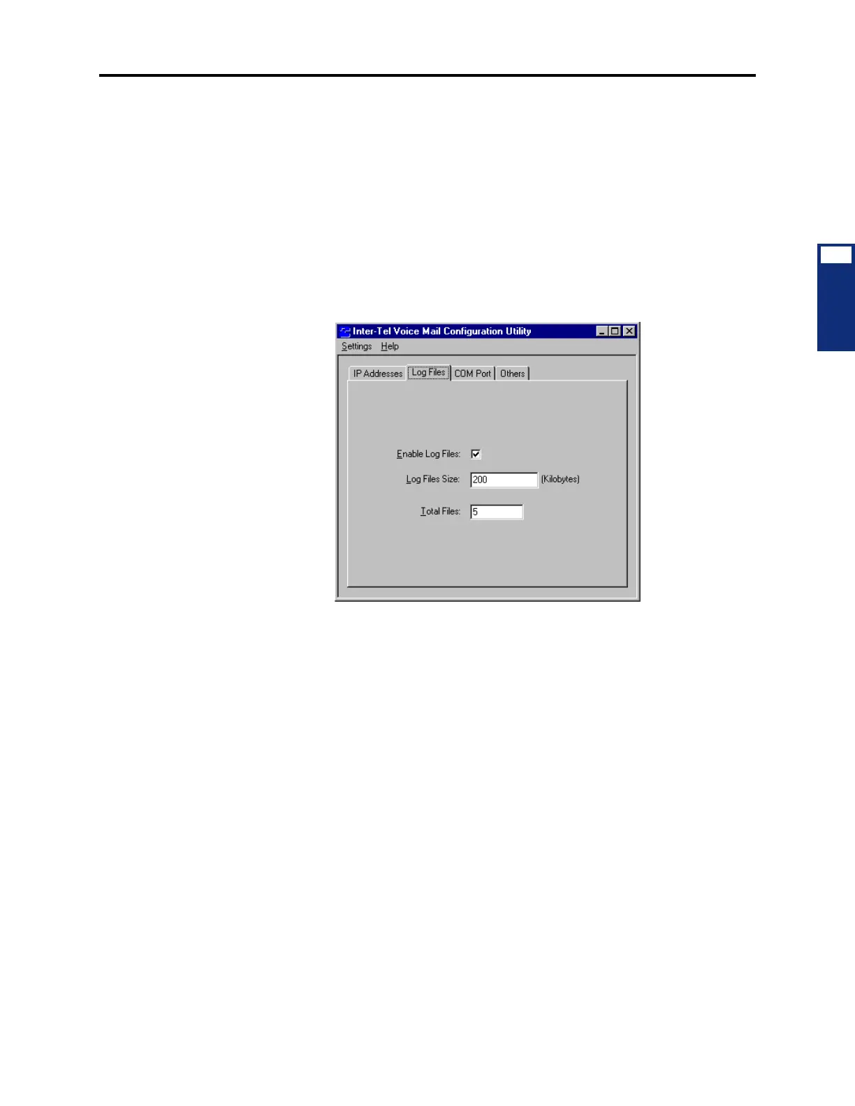 • Log Files Sizes: Specifies the size of the log files in kilobytes. The default size is 200