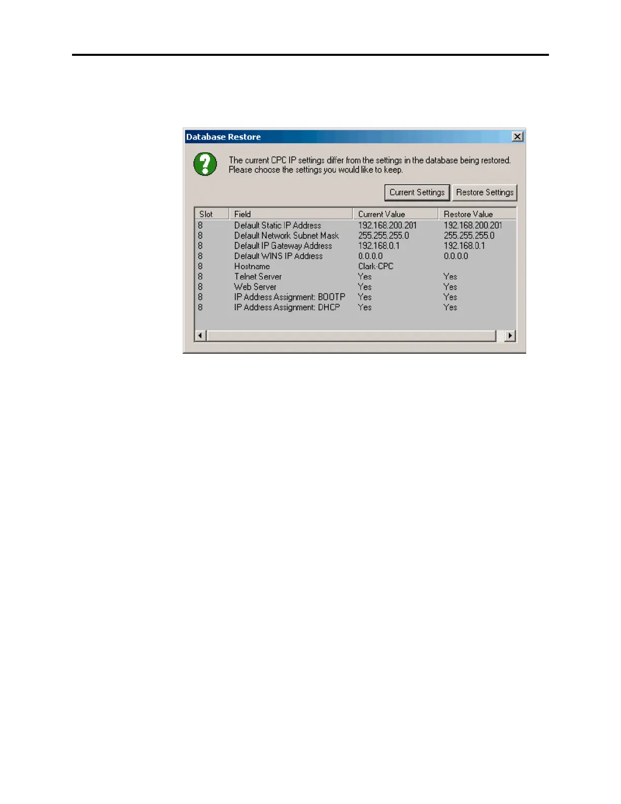 database to be restored, the system checks the current IP settings for the CPC. If any differ-