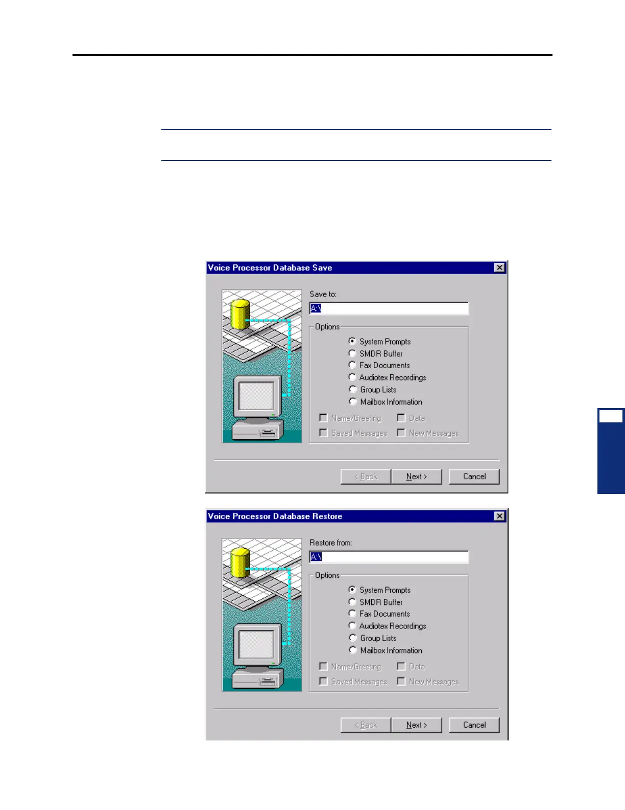 12.1 The selective Voice Processor Save and Restore options are available under the Data-
