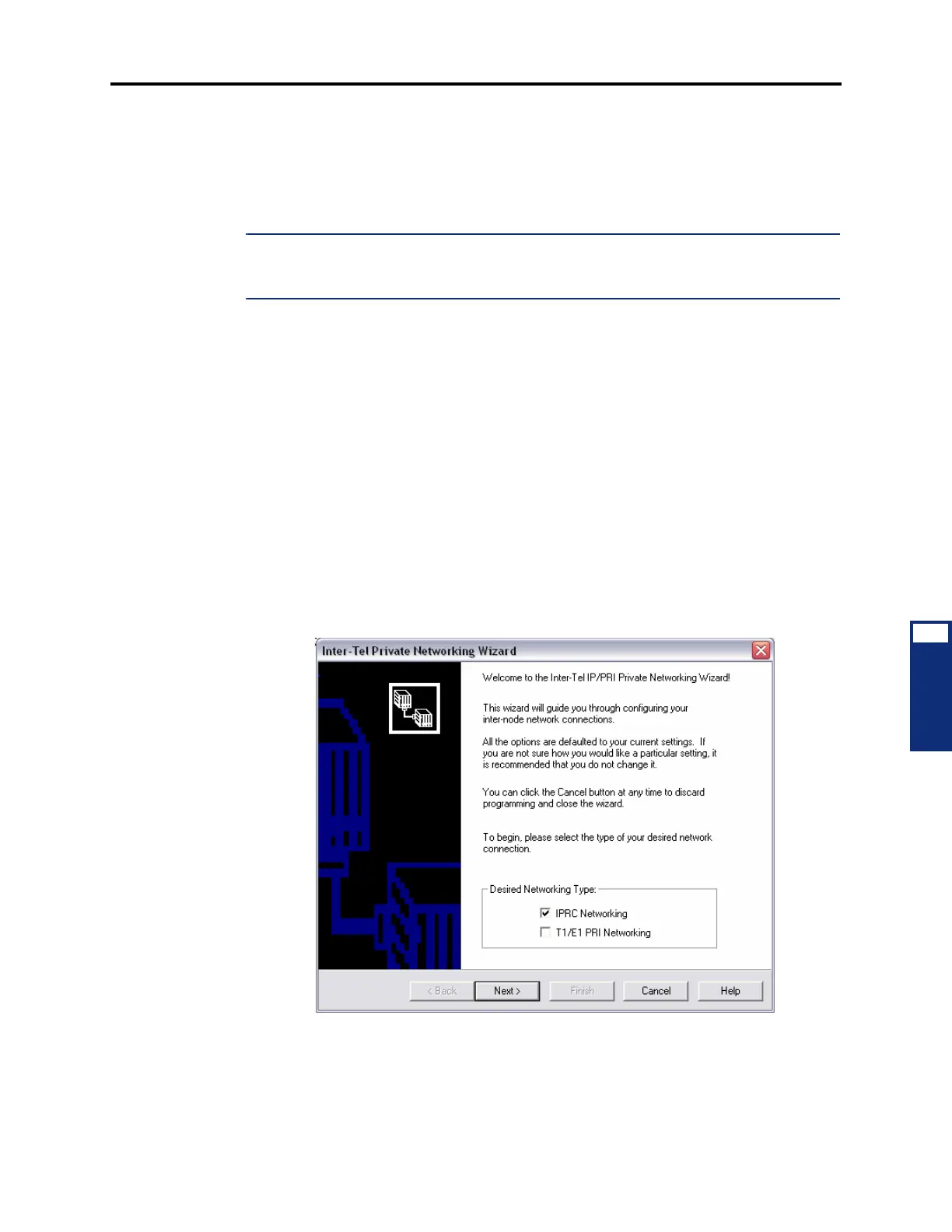 16.3 Selecting the Networking Type (IPRC or T1/E1): The first screen of the networking
