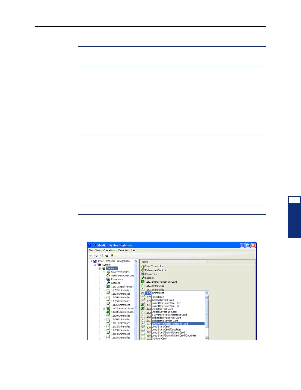 as the card type for the corresponding card slot in the Systems/Cabinets folder as shown