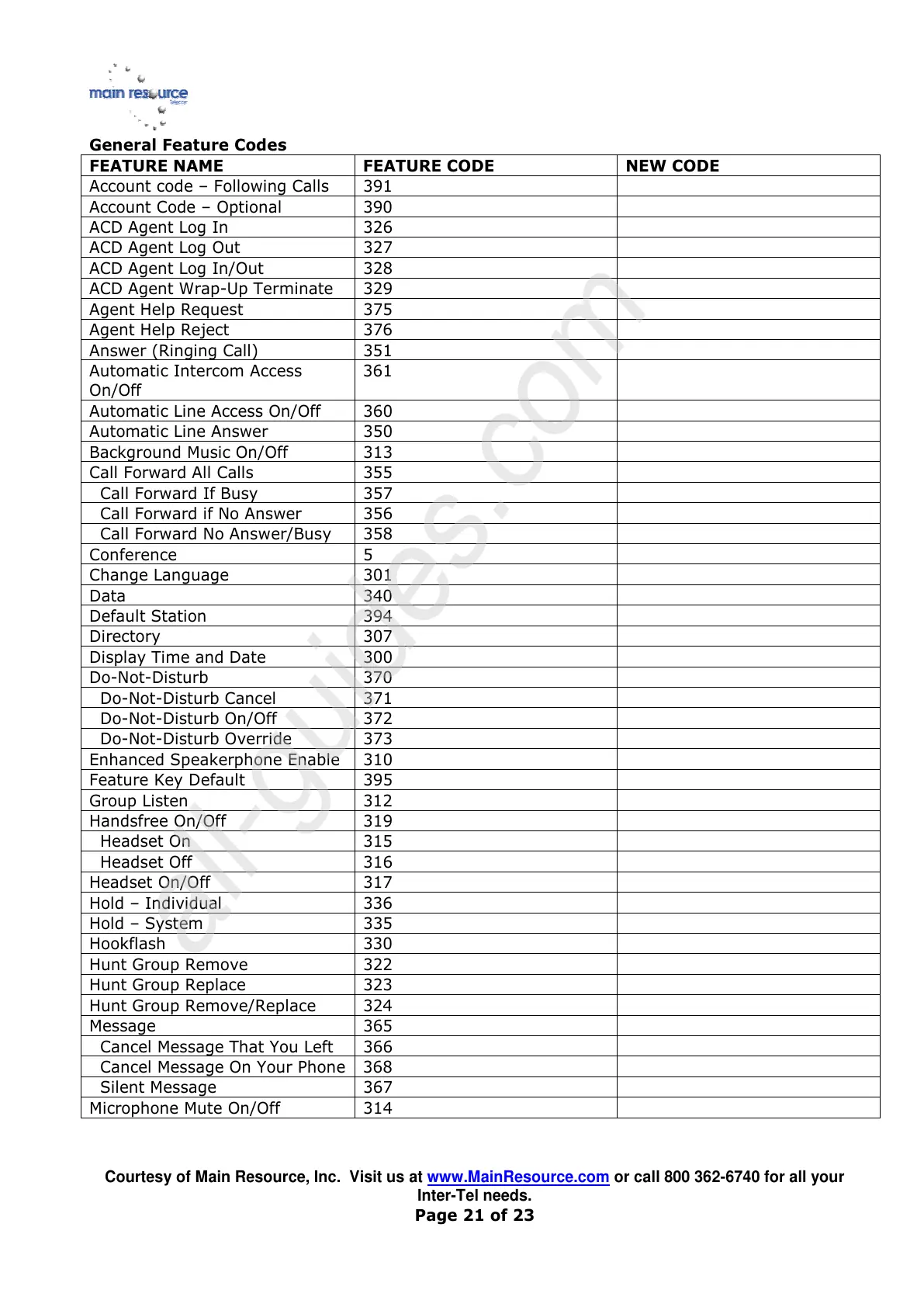 Courtesy of Main Resource, Inc. Visit us at www.MainResource.com or call 800 362-6740 for all your