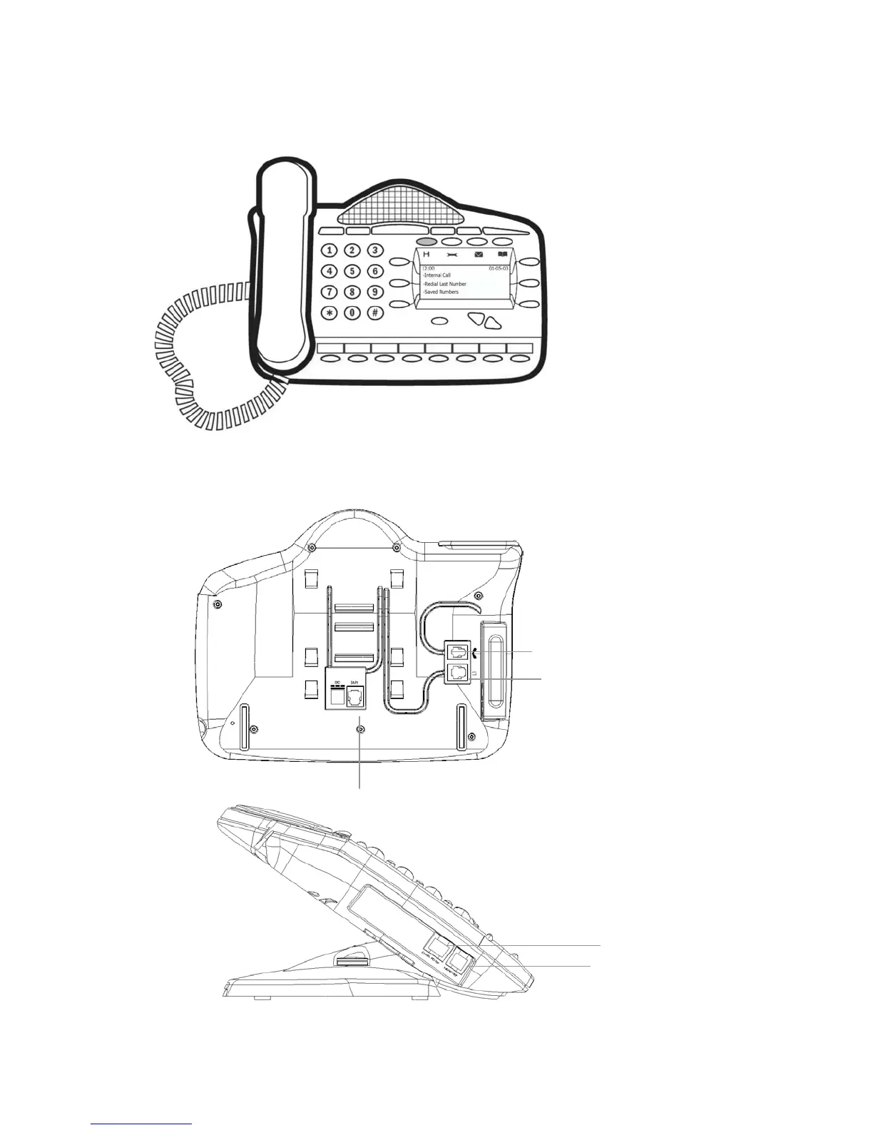 ECX 1000/ ECX 1000W digital telephone connections (underside of phone)