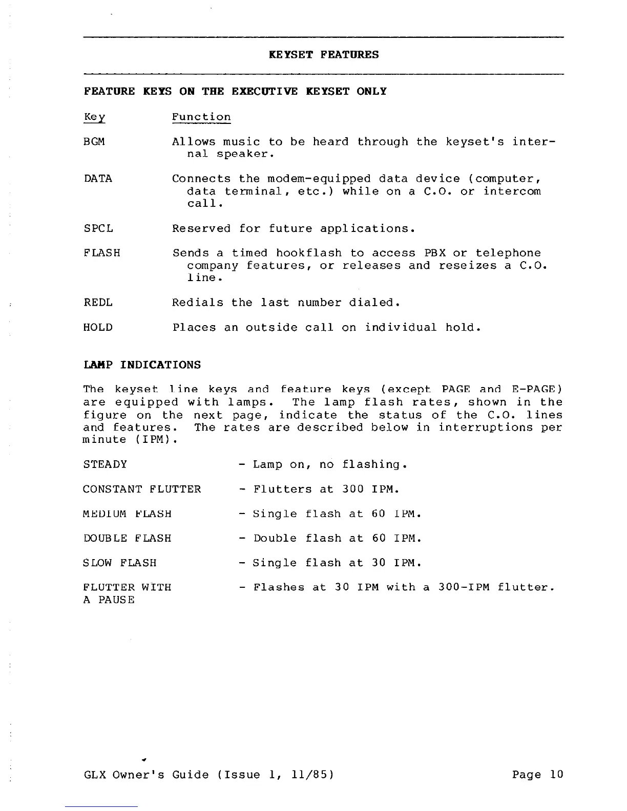 GLX Owner's Guide (Issue 1, 11/85) Page 10