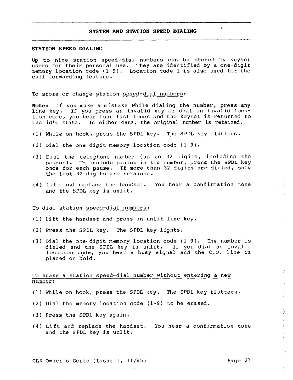 SYSTEM AND STATION SPEED DIALING