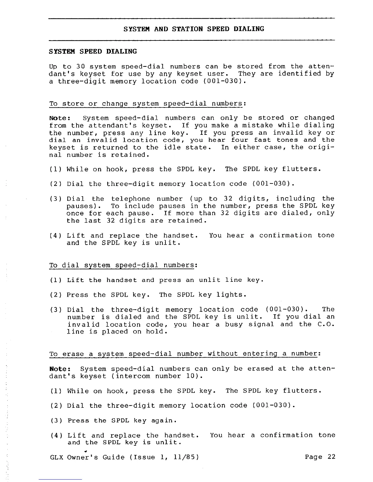 Up to 30 system speed-dial numbers can be stored from the atten-