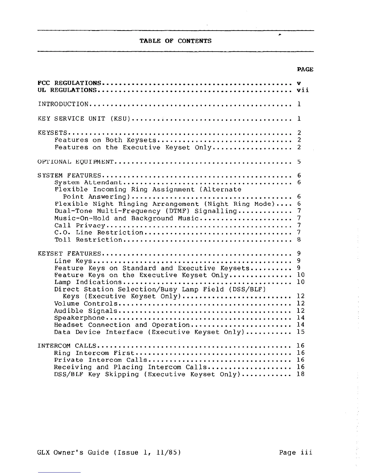 GLX Owner's Guide (Issue 1, 11/85) Page iii
