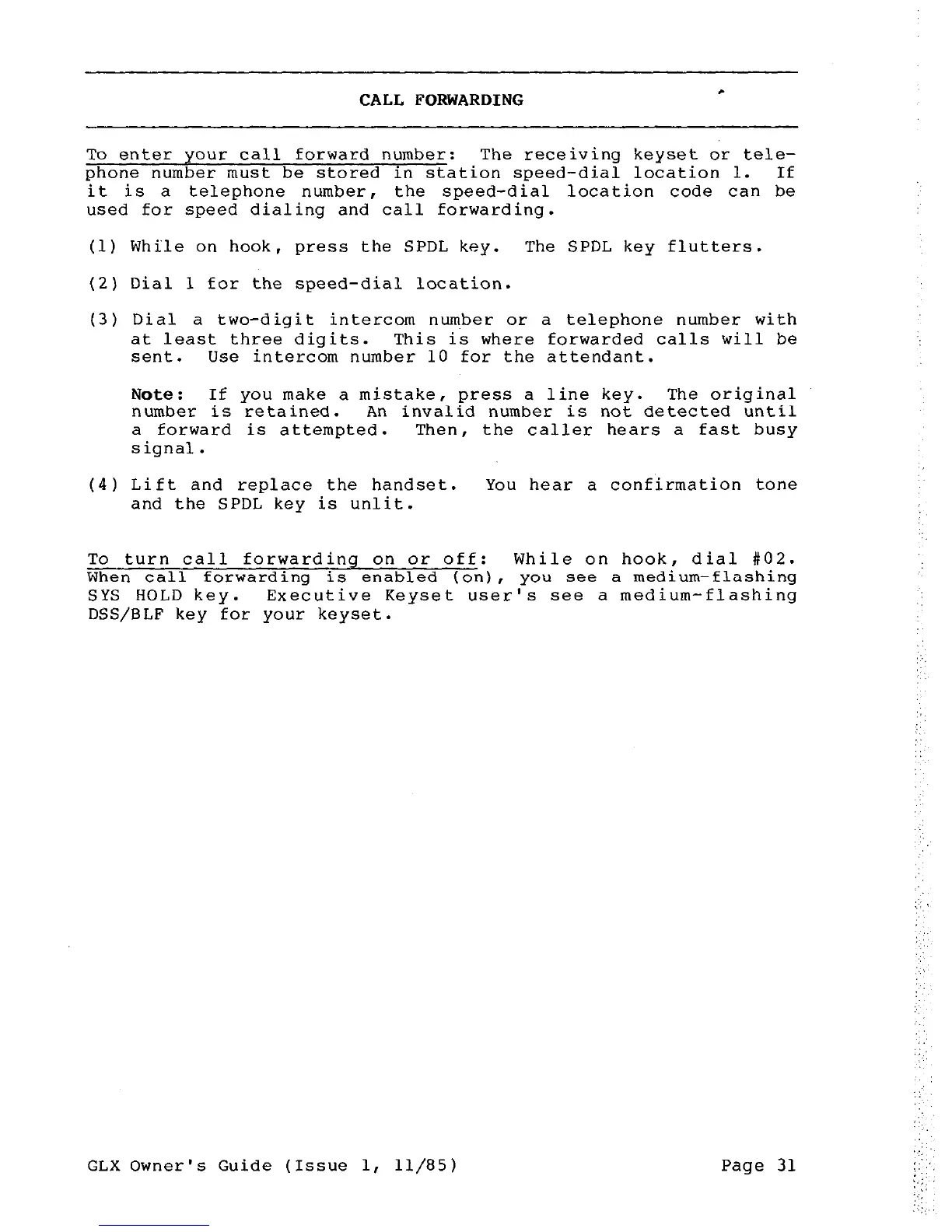 GLX Owner's Guide (Issue 1, 11/85) Page 31