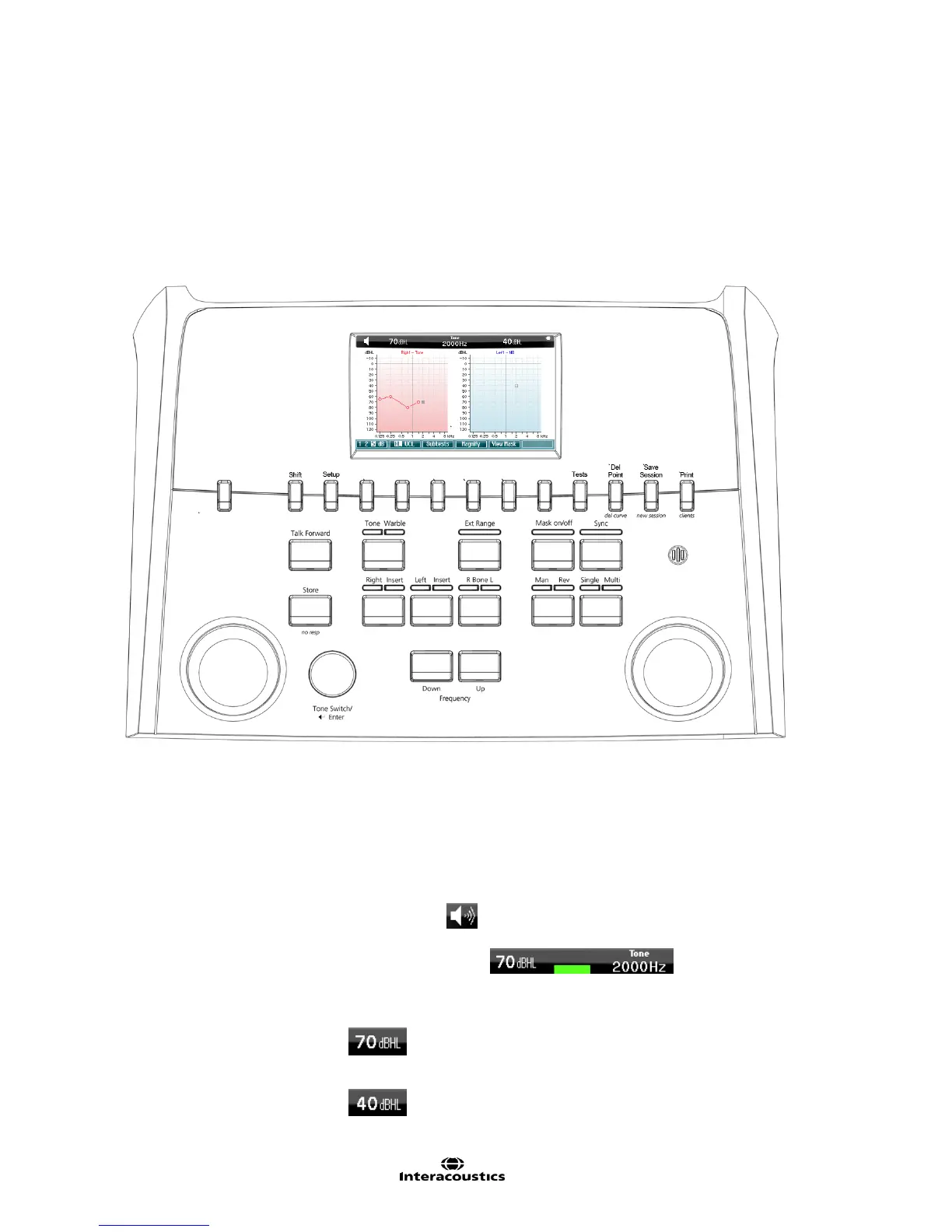 The figure below shows the outline of the front plate of the AD226 including buttons, dials and display: