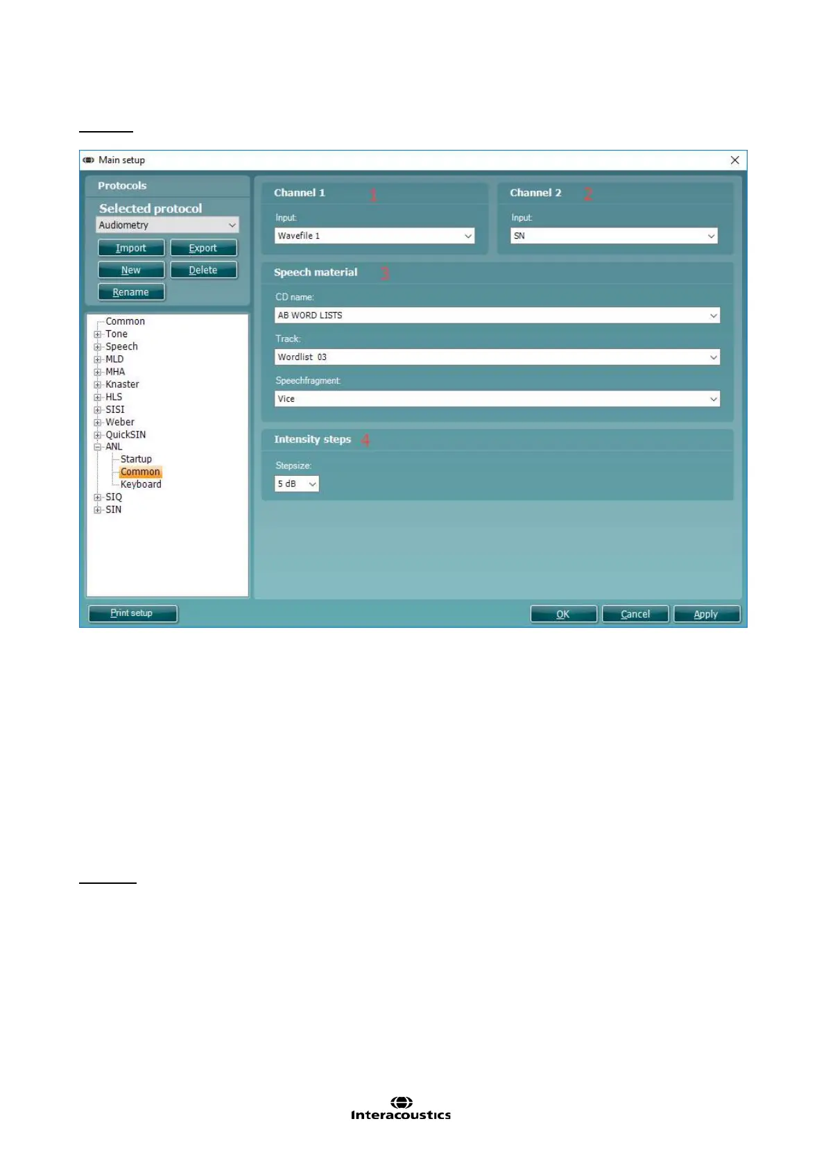 3) Choose your Speech Material via this section. The CD chosen corresponds to material which is already