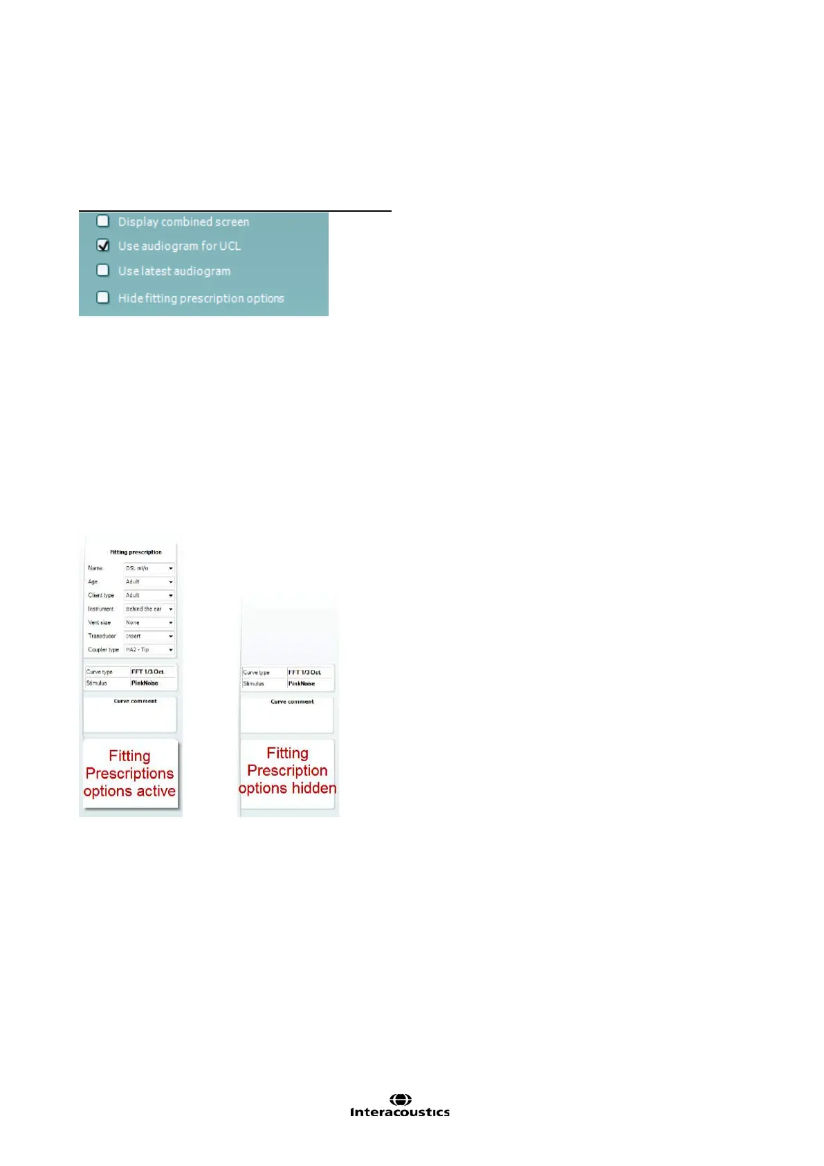 When using the NAL-NL1, NAL-NL2 or DSL m[i/o] fitting prescriptions UCLs from the audiogram screen will