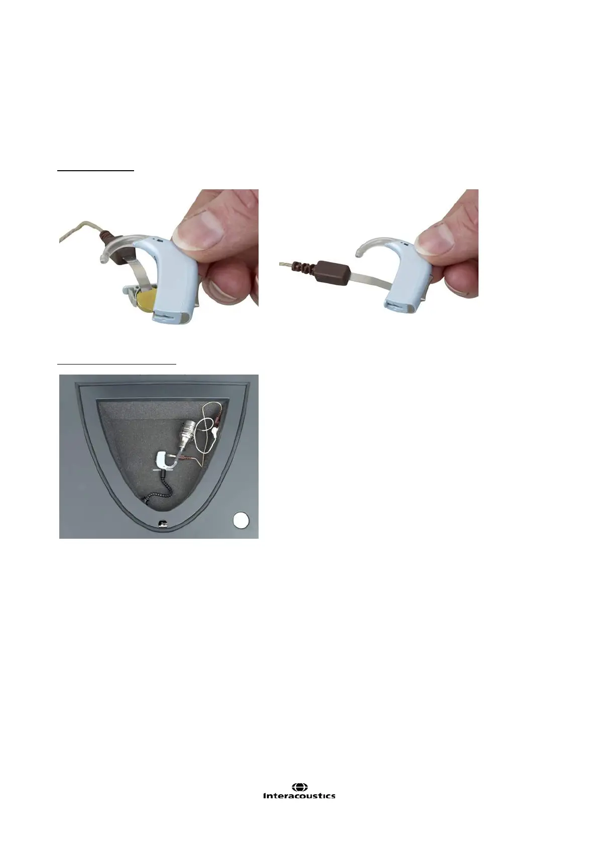is placed in the hearing aid battery compartment and connected to the test box using the corresponding plug
