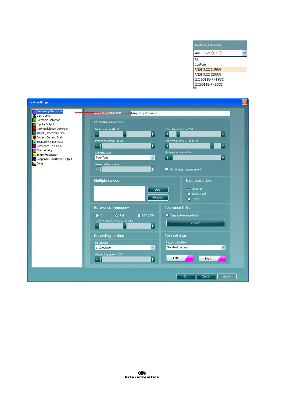 1) Ensure that Frequency Response is marked in the left hand side of the screen. The name of the