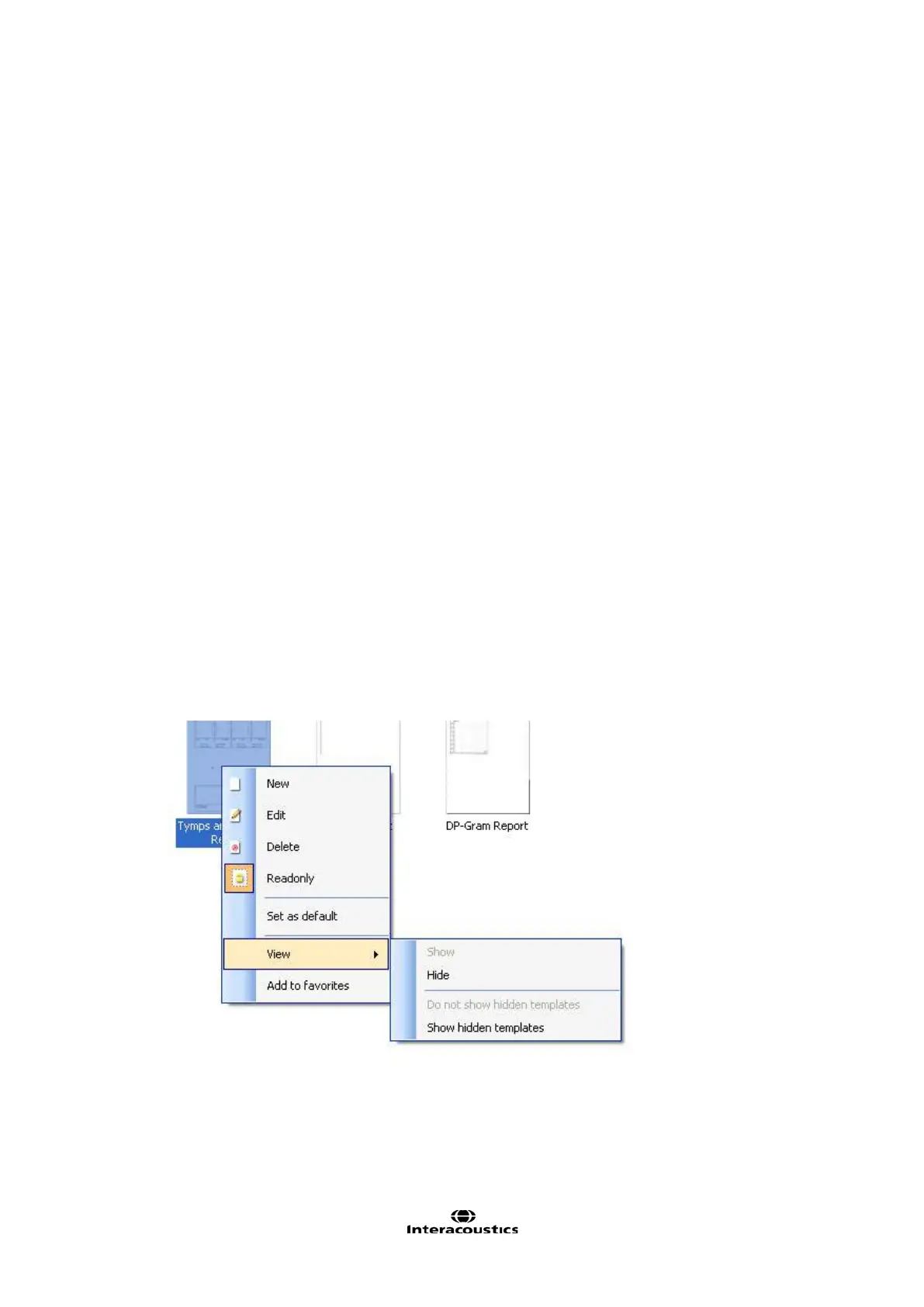 9. Select one of the existing templates and press the Hide Template button to hide the selected