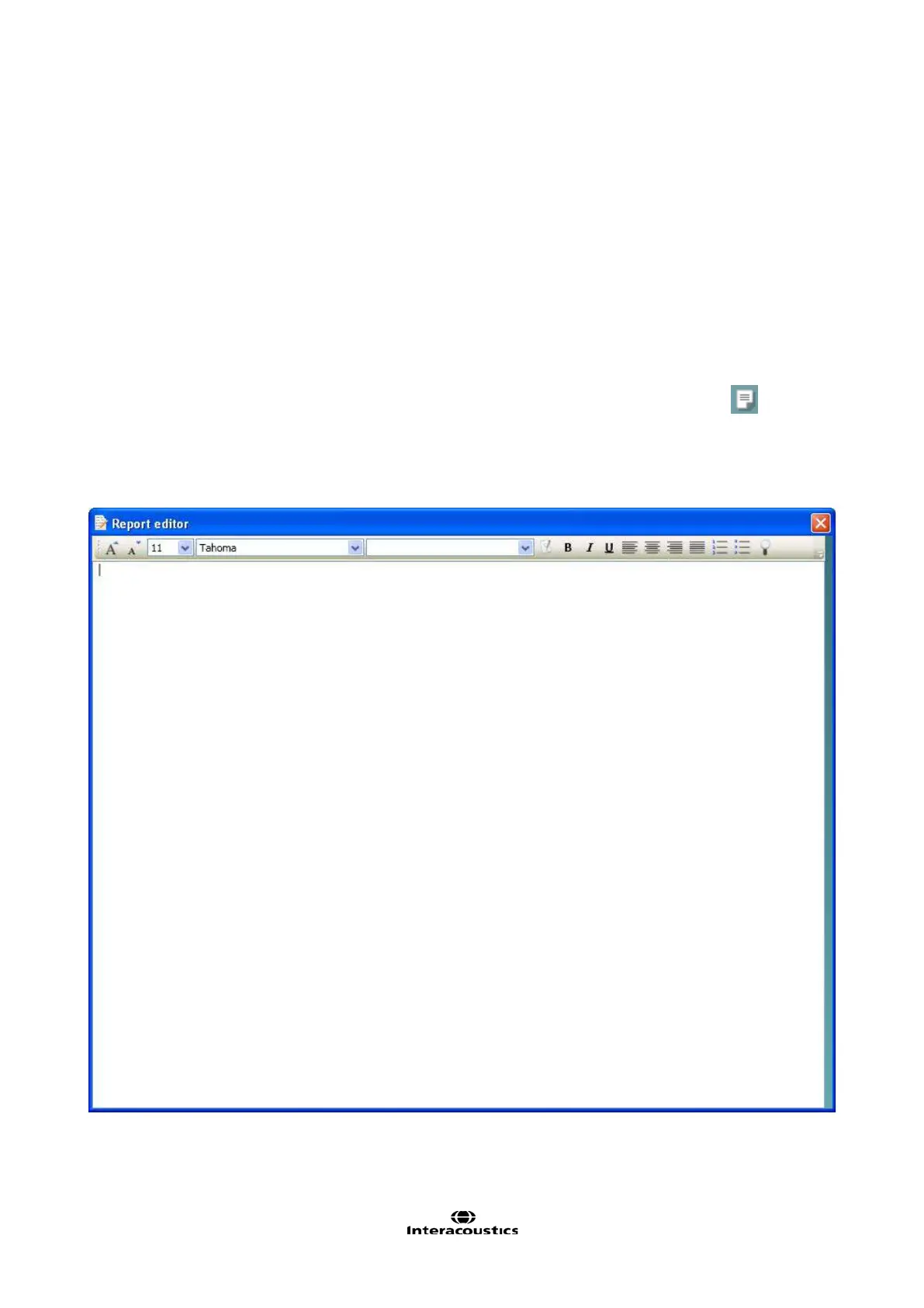 To open the Report editor in order to make a report on the current patient you need to press