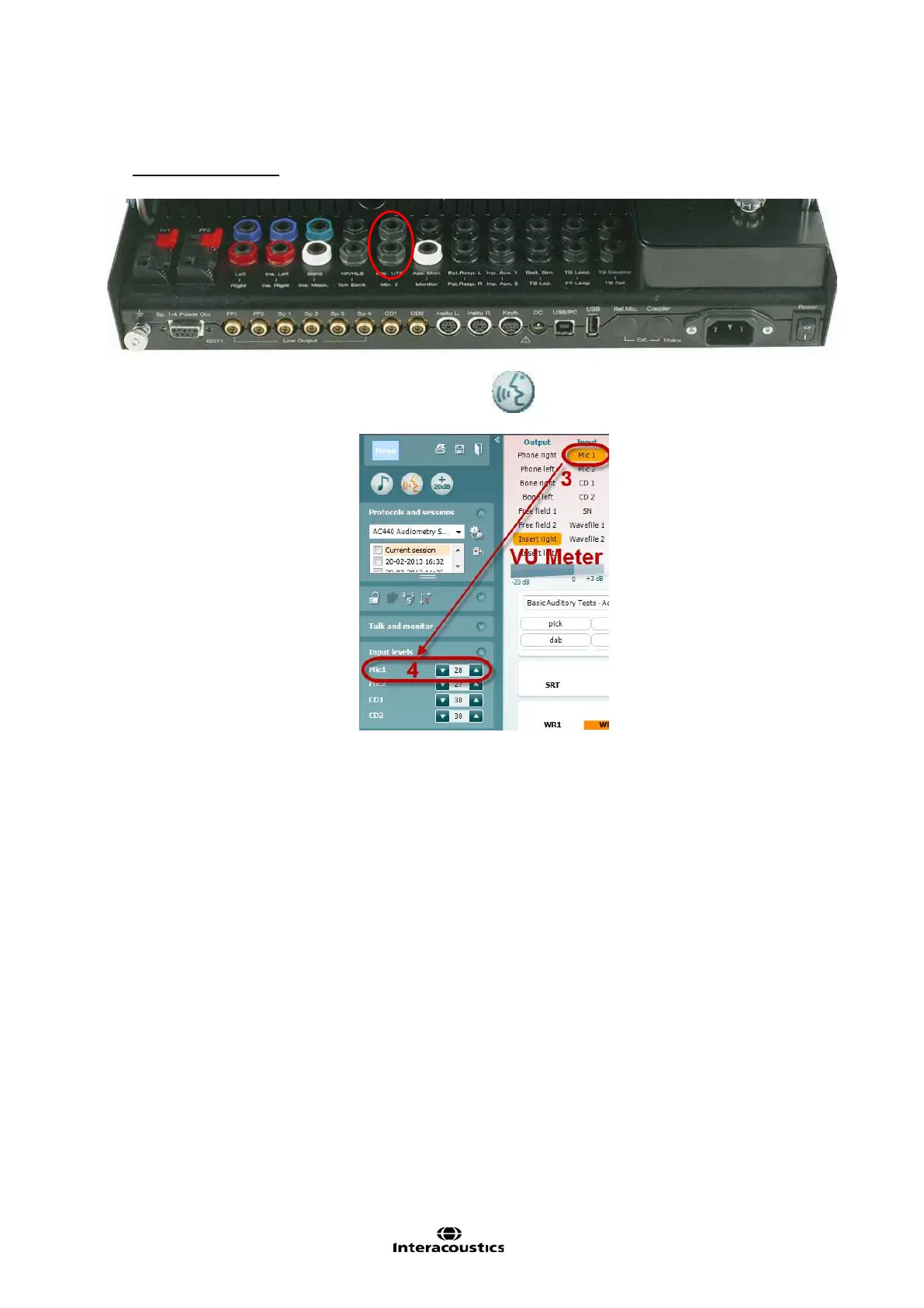 5) When the VU meter is adjusted the microphone input is ready for use. Perform the speech audiometry
