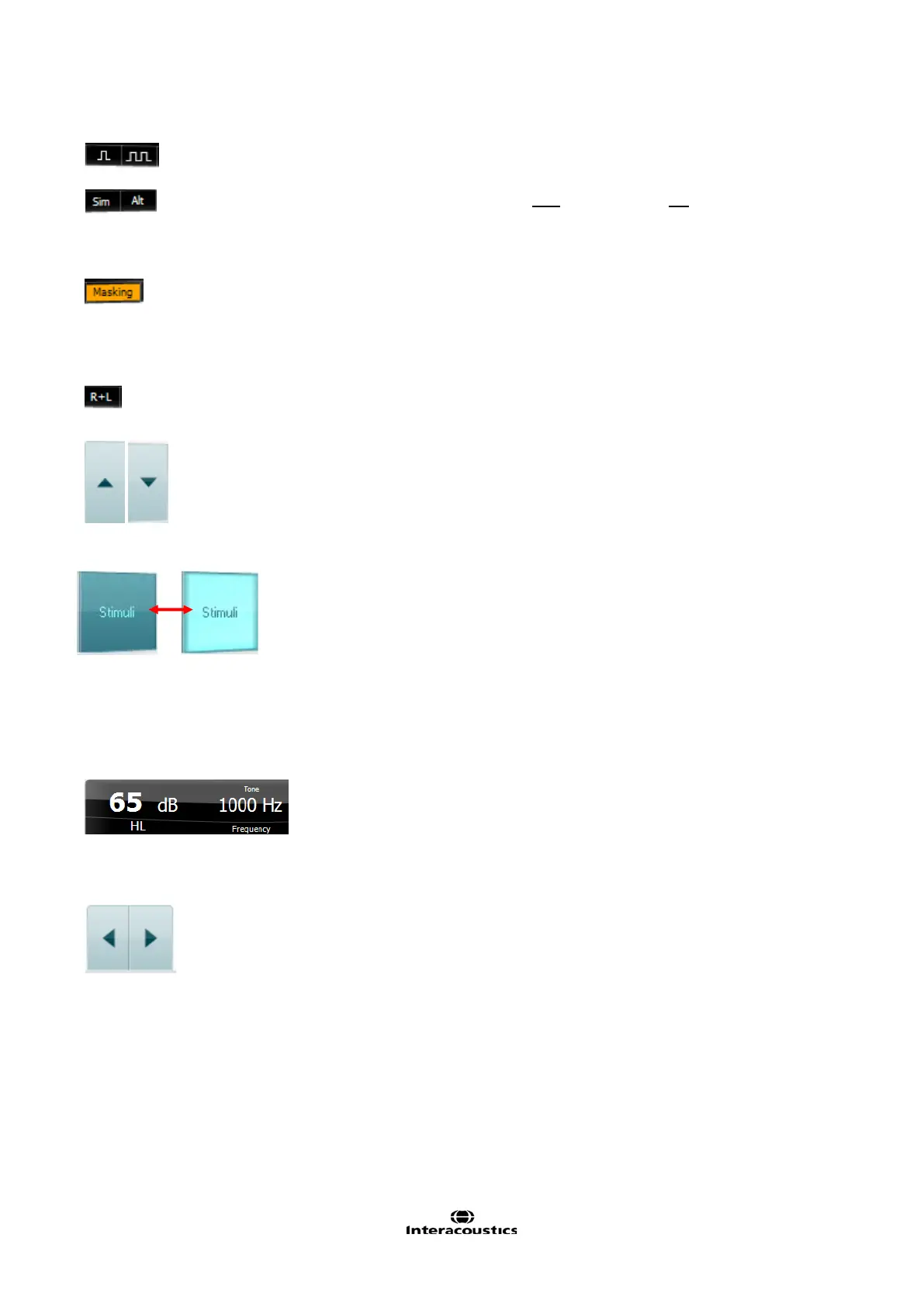dB HL Increase and Decrease buttons allows for increasing and