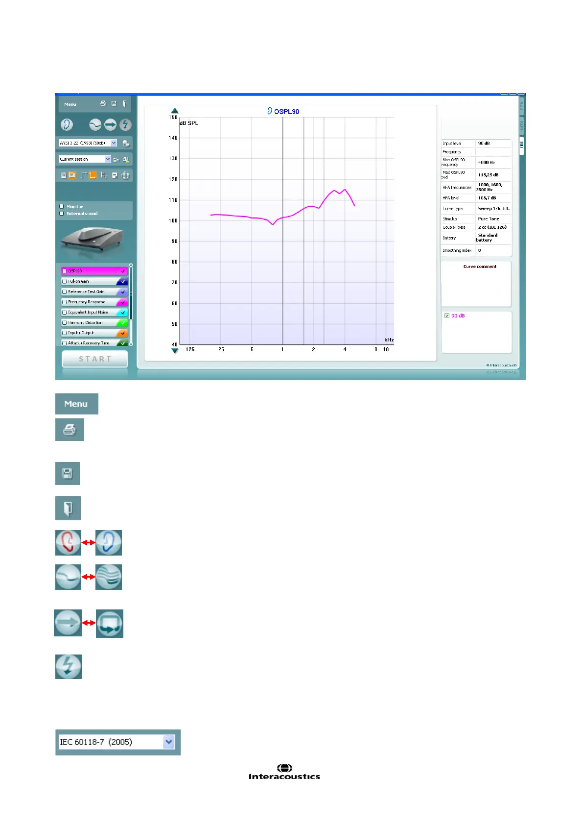 Change Ear button allows you to toggle between right and left ear.