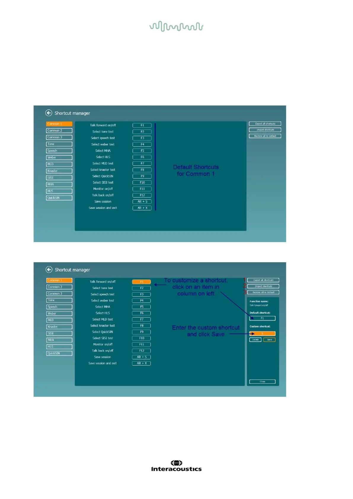 Go to AUD module │Menu │ Setup │PC Shortcut Keys