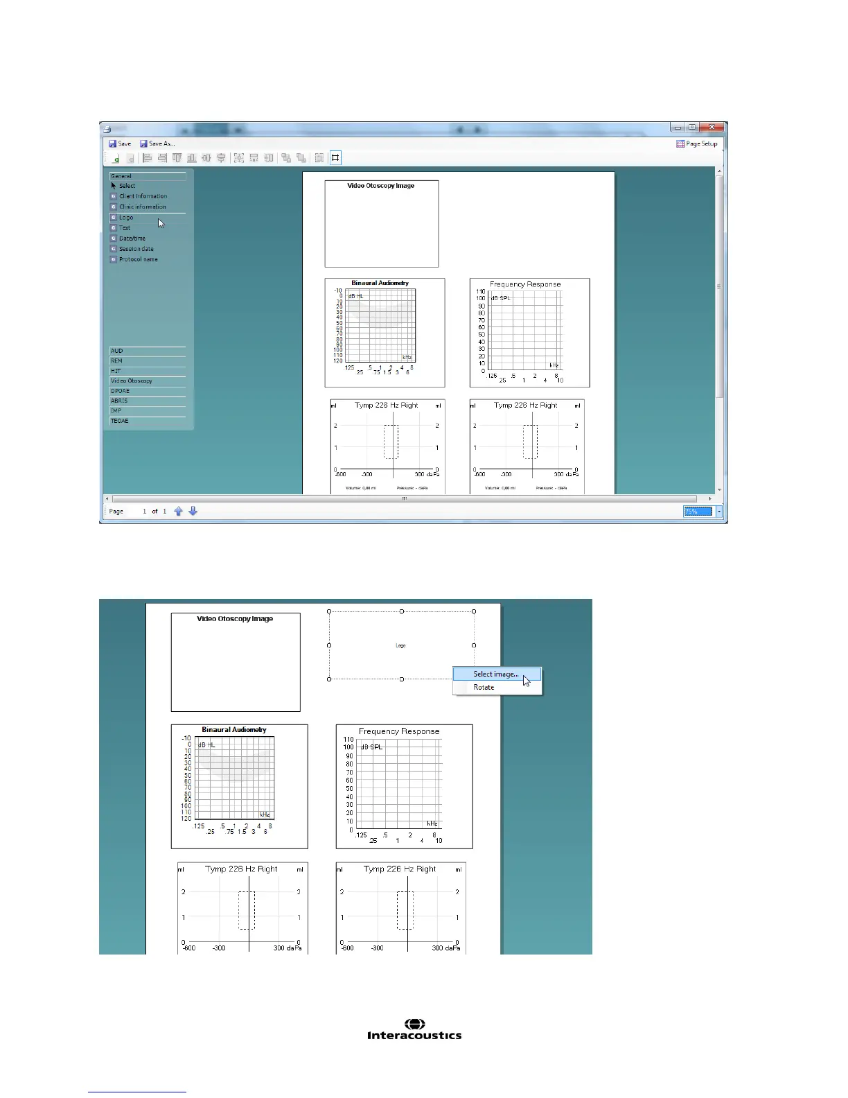 can add information on your clinic (via a blank Test box) and even a logo. This can be done via the General