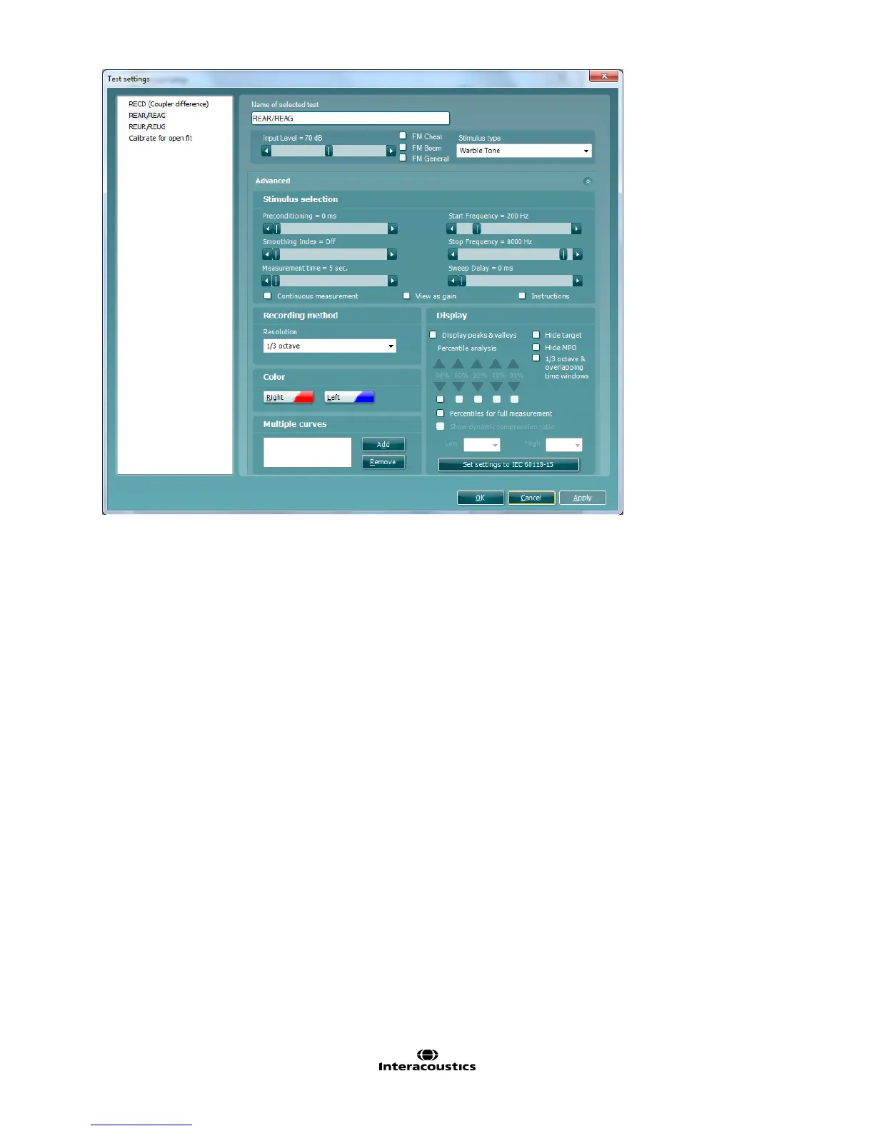 including renaming, input level, stimulus type, curve smoothing index etc. Once you have set and are happy