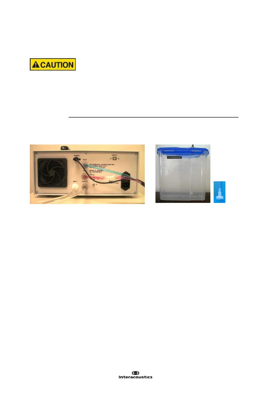 Aqua Stim levereras från Interacoustics utan vatten i behållaren. Fyll den externa tanken med en gallon