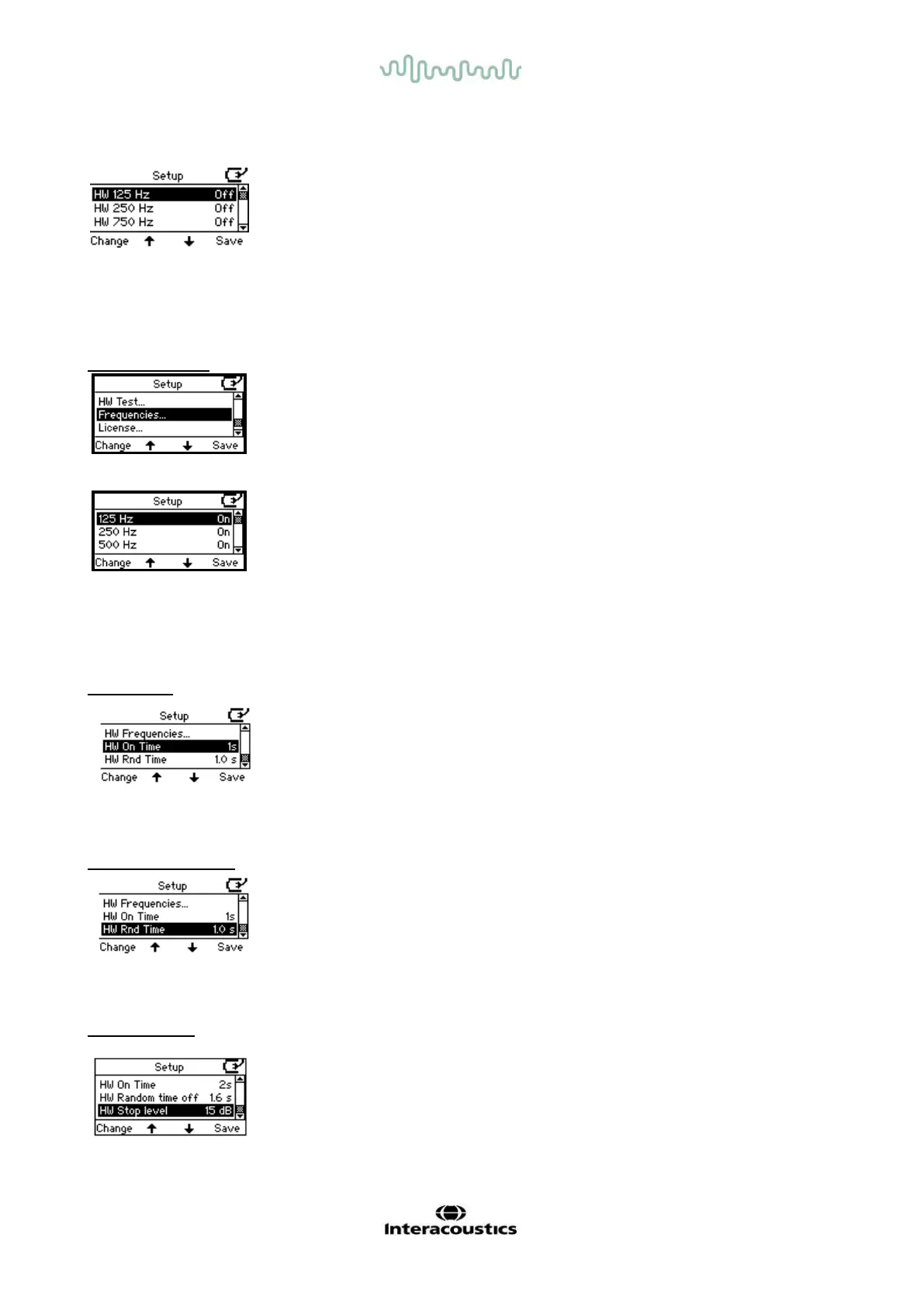 Press Change to access the default frequency range from 125Hz to 8 kHz for daily operation.