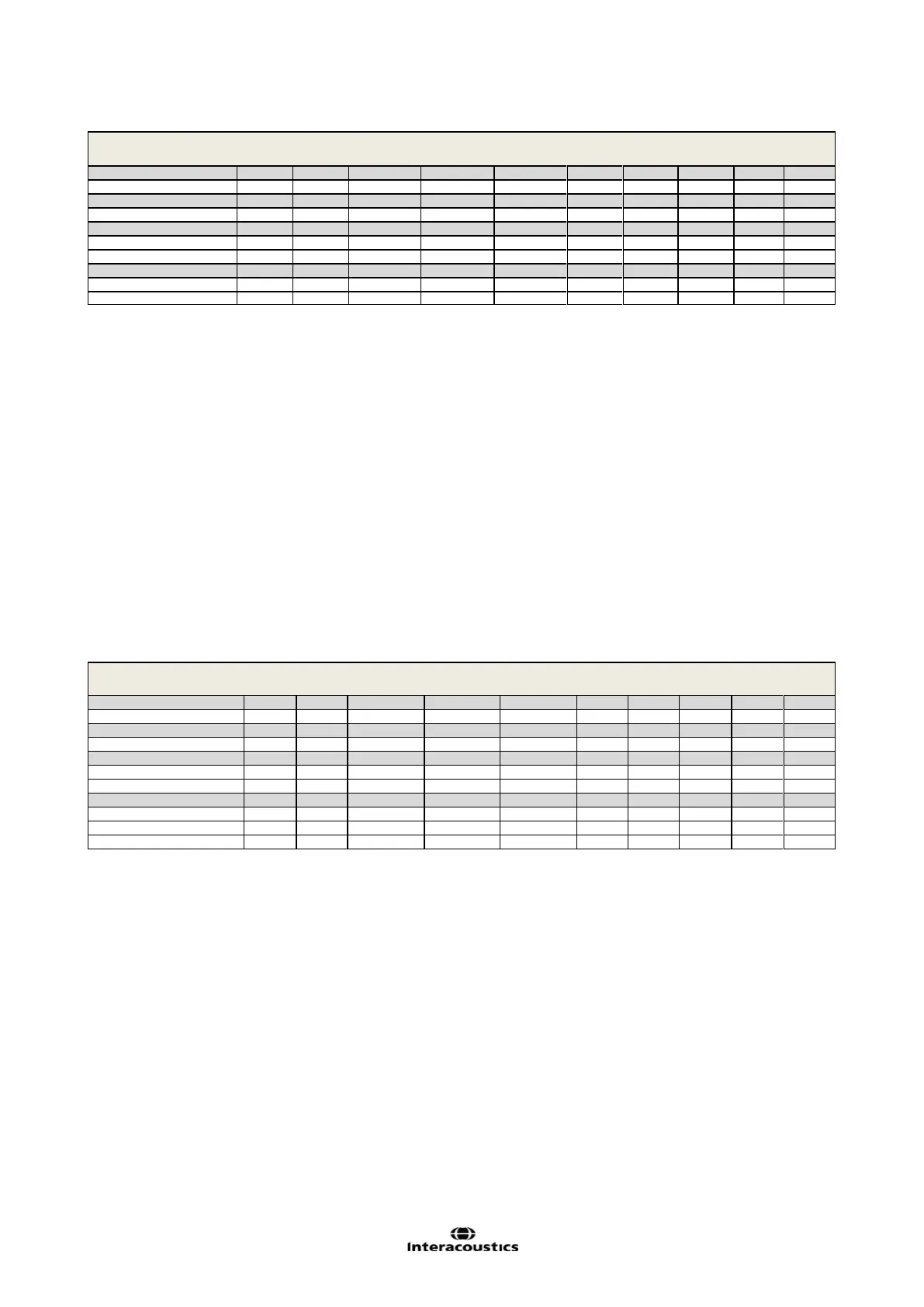 Callisto RETSPL-HL Tabel