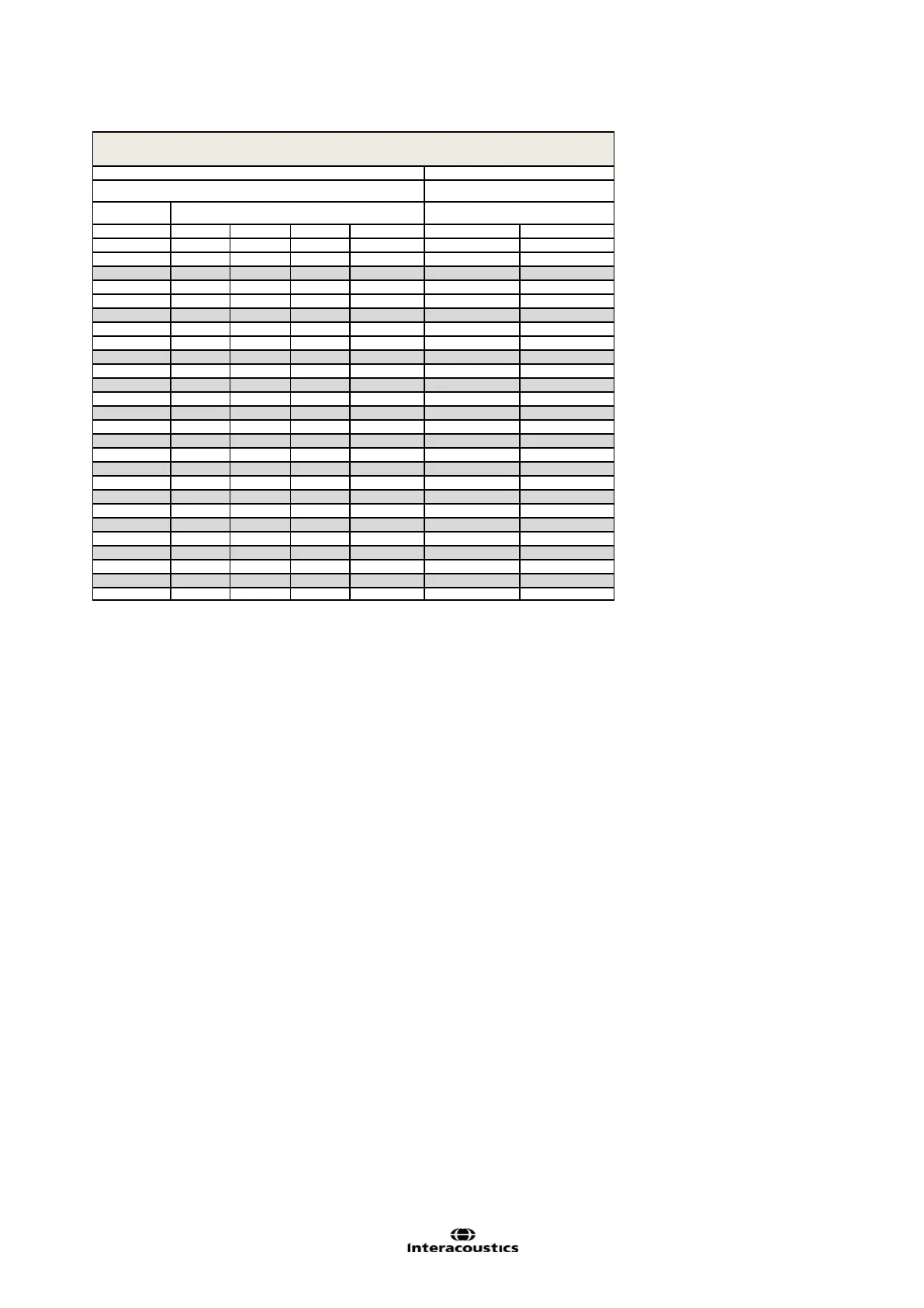Callisto RETSPL-HL Tabel