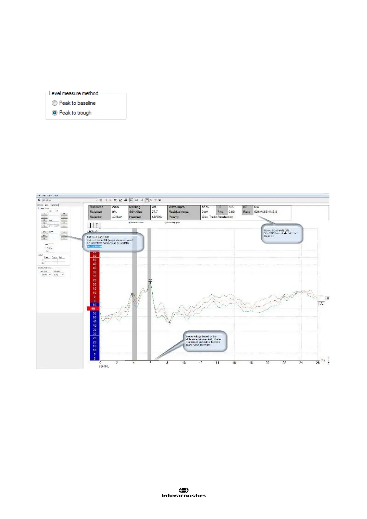 not and what the recorded noise is. Place Wave V & Tr waveform markers on the recorded curve.