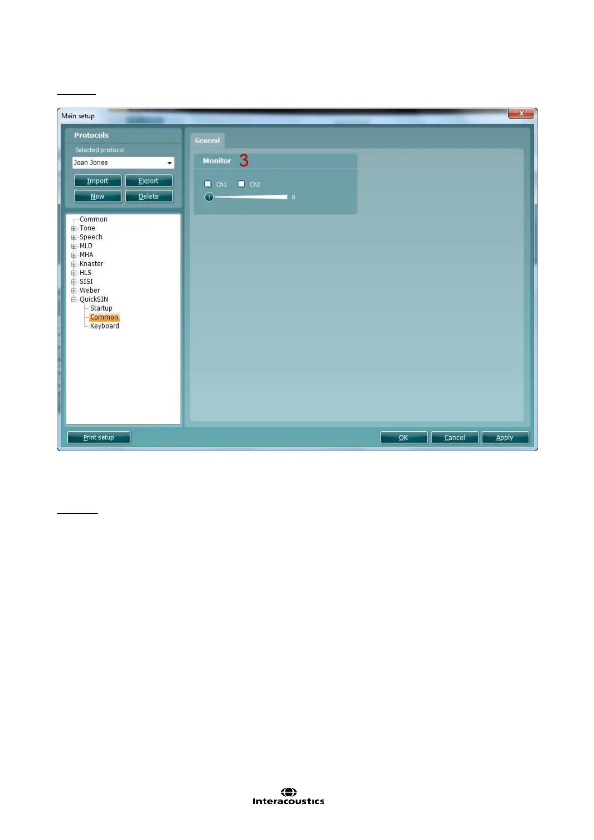 3) Select Monitor for channel 1 (Ch1) and channel 2 (Ch2) using the check boxes and adjust the