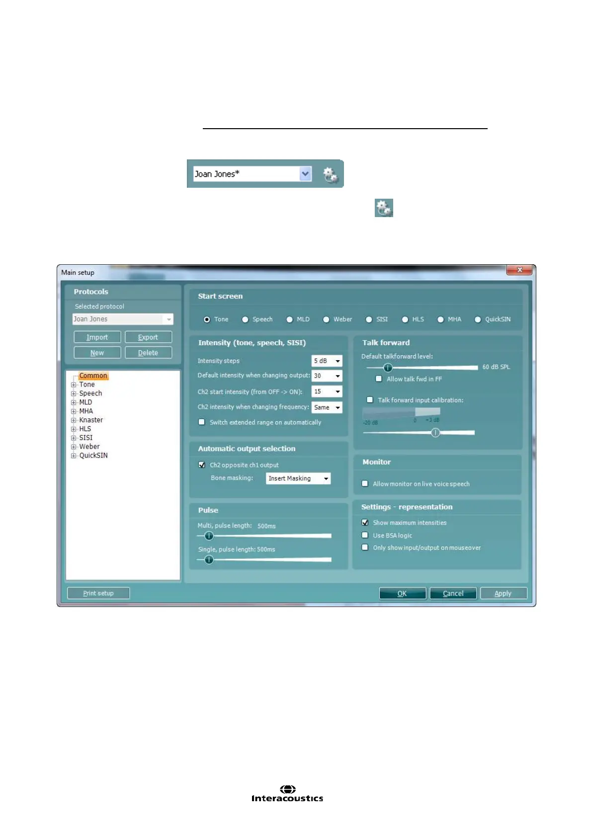 Browse the setup options to make temporary changes as if creating a test protocol (see section 1.7.2).