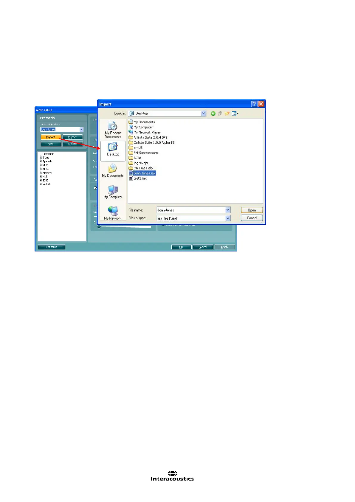 2) Click Import and browse to the location on the PC or USB where the test protocol file has been saved.