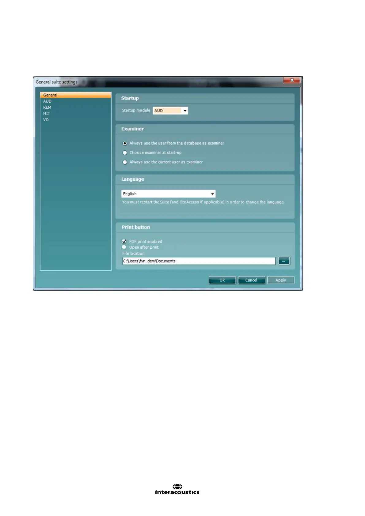 Choose which module will be visible on starting up the Suite: AUD, REM, HIT or VO