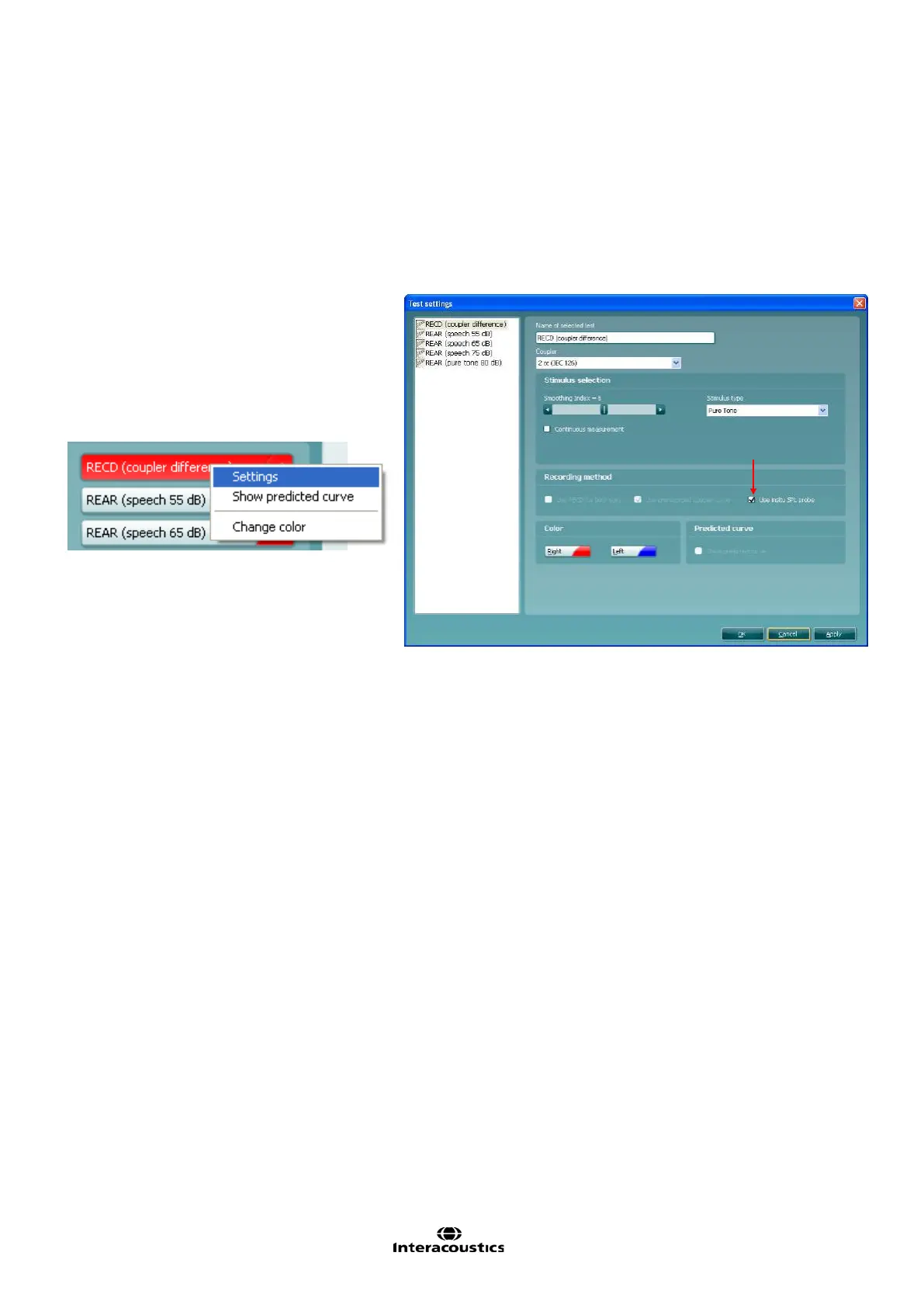Right click on the RECD test in the protocol list and select Settings to check if the system is setup to use the