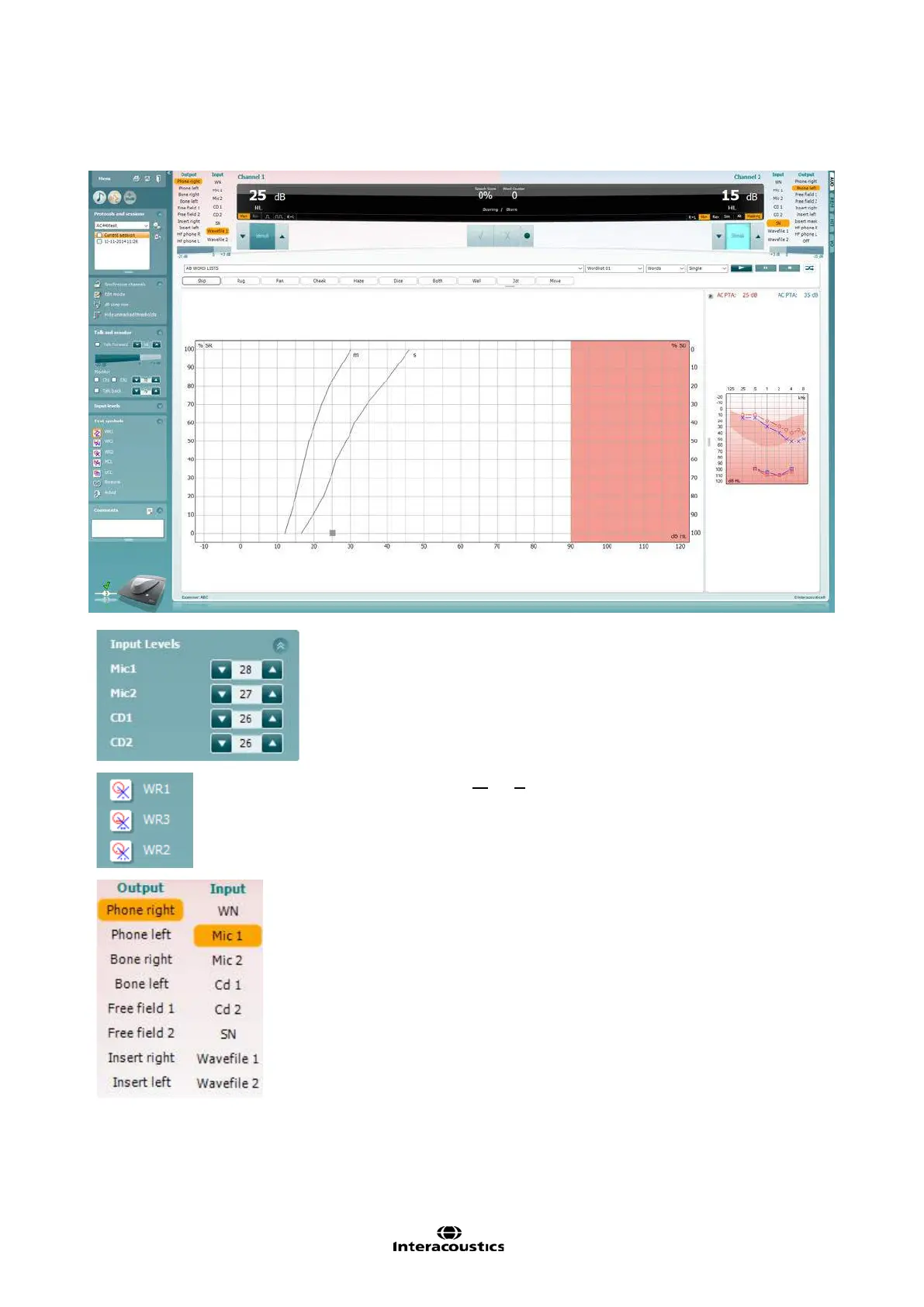 phones, bone conductor, free field speakers or insert phones. Note that the