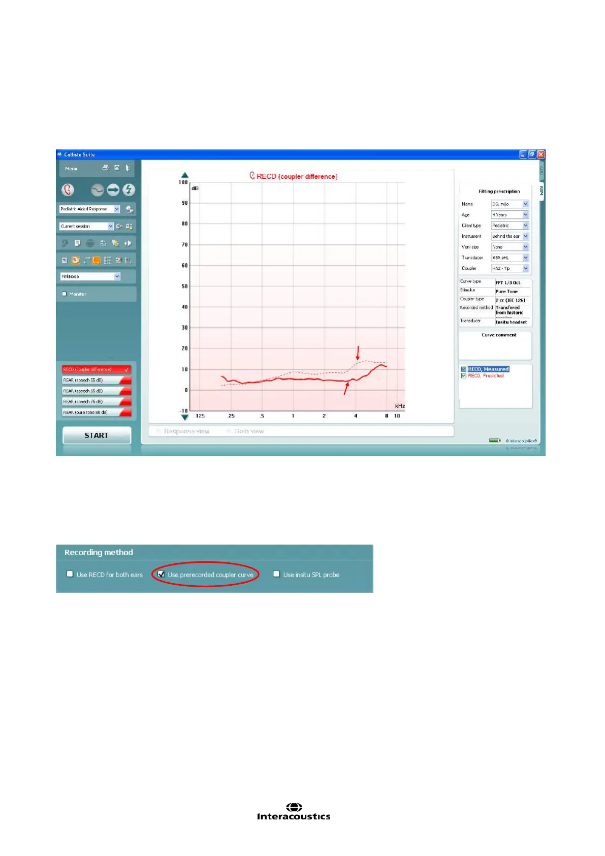 RECD. Note that when both a measured and a predicted RECD are displayed the system will always