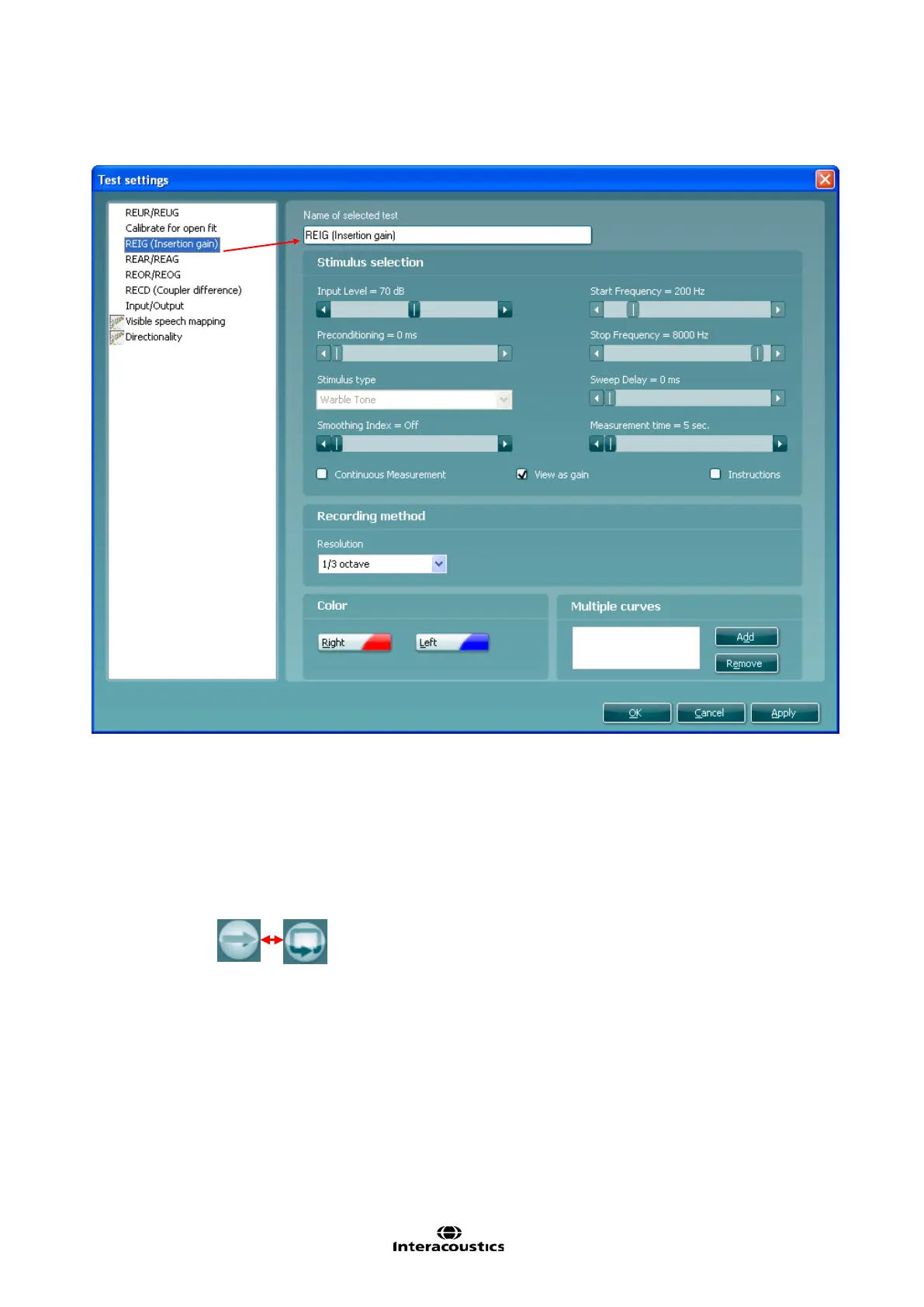 Note the option to write a new name for the test in this section (e.g. “REIG 70 dB input”)