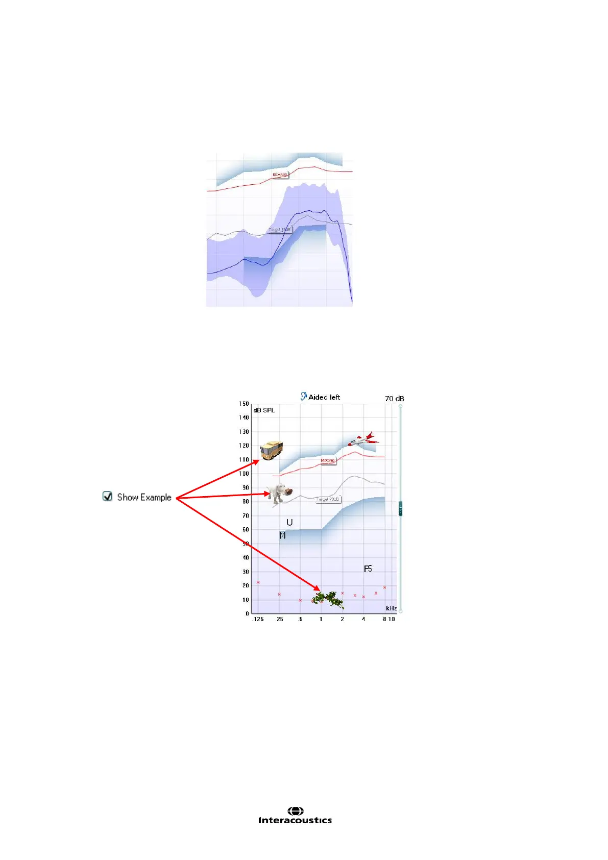 Tick Show Examples and show the speech area together with sound examples from real life like a dog