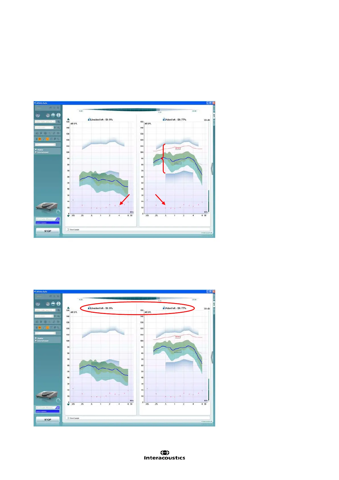 between the aided and unaided. This helps to demonstrate the hearing aid benefit effect and the importance