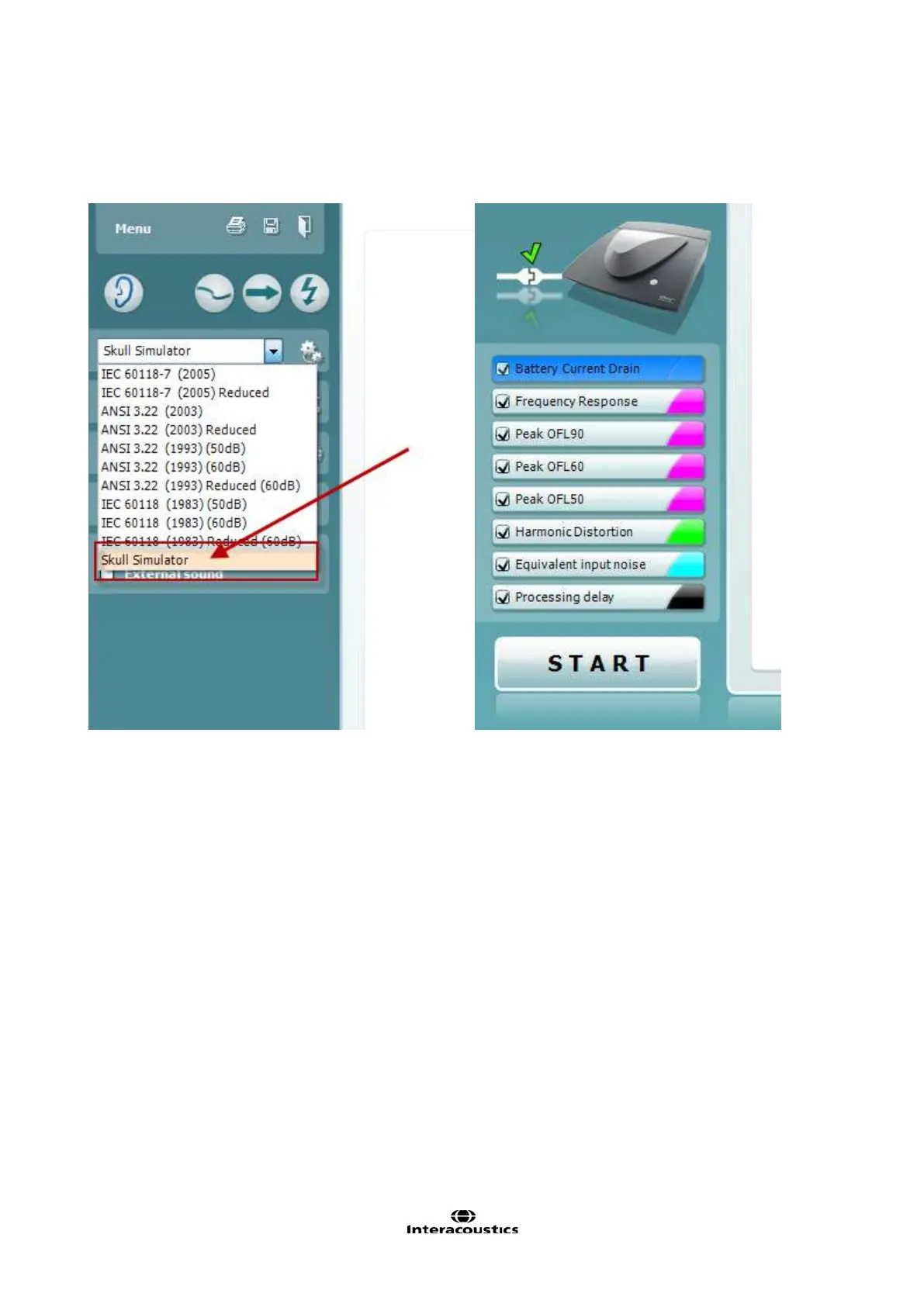 ANSI or IEC protocol does NOT exist for bone anchored devices, the Skull Simulator default protocol was
